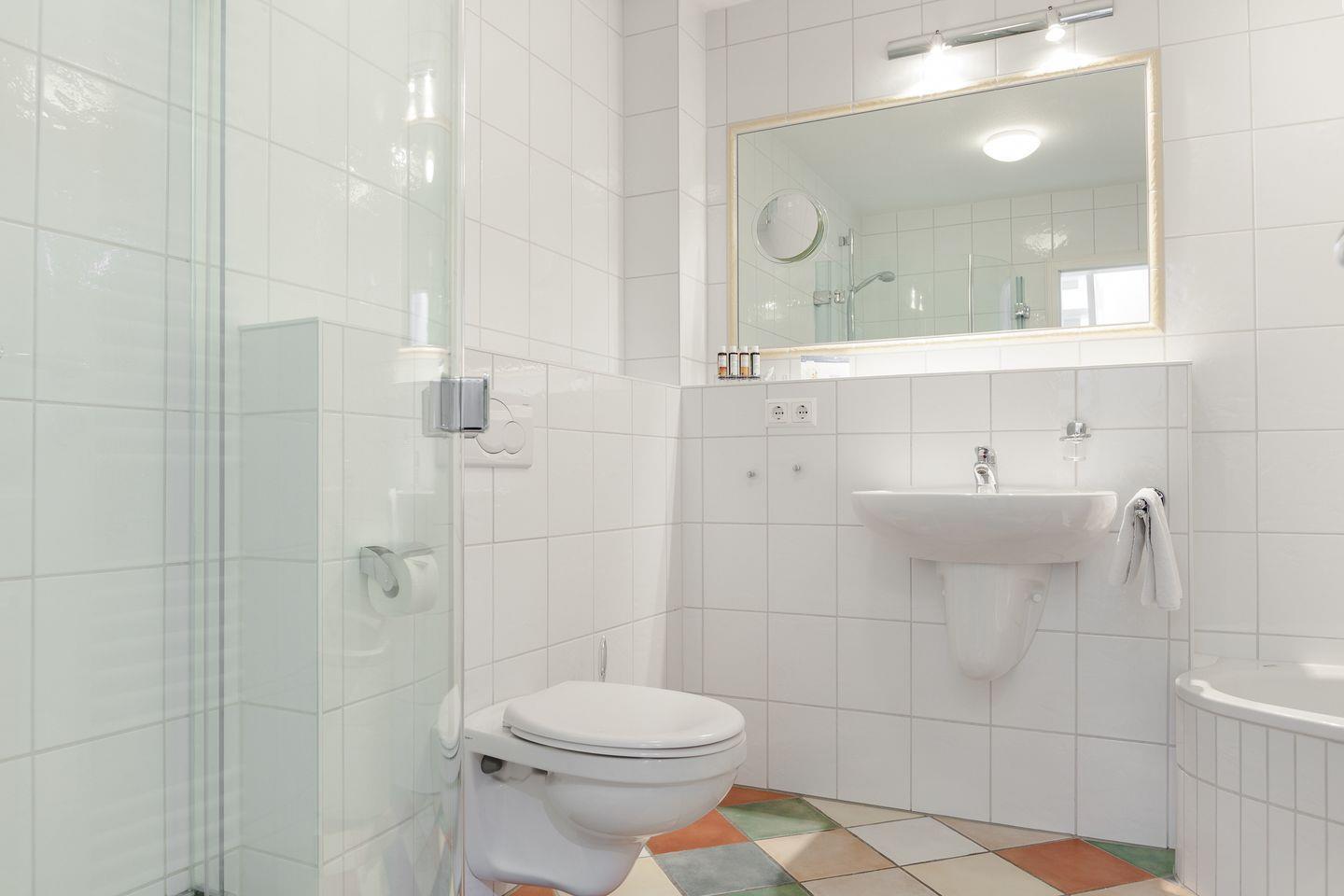 Bad mit Wanne, Dusche und WC. WLAN-Repeater vorhanden.