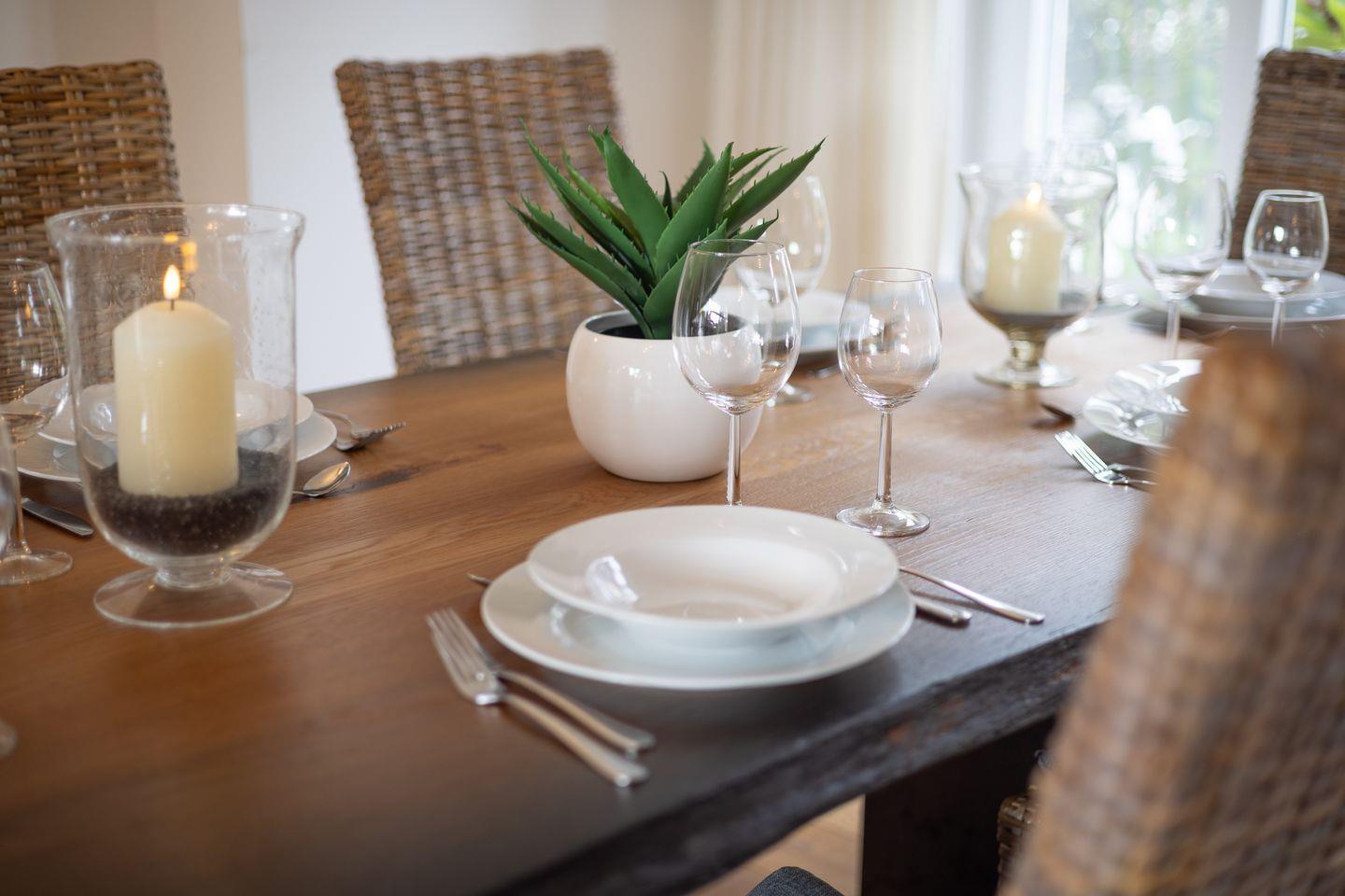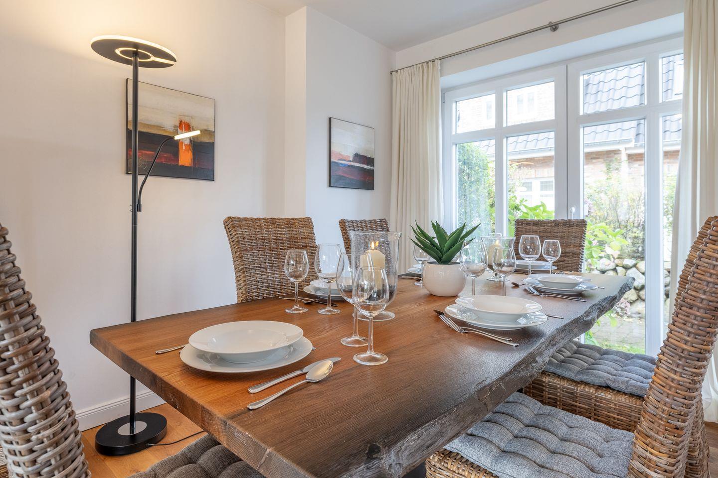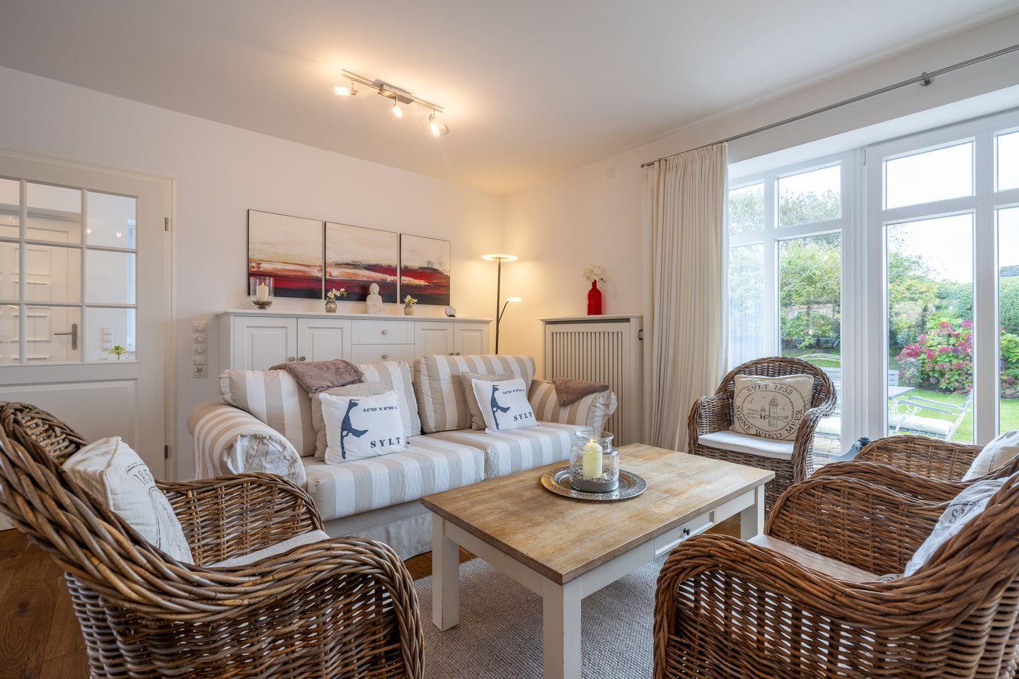 Warum bei schönem Wetter nicht draußen Frühstücken ? Ihre große Terrasse ist ein Traum und die Morgensonne zaubert Ihnen sogar Sonnenstrahlen auf Ihren Open Air Frühstückstisch. Wertiges Gartenmobiliar und Strandkorb stehen Ihnen natürlich ebenfalls zur Verfügung (ca. April-Oktober). Ihr eigenes, großzügiges Süd-/Ostgrundstück lässt Sie die Sylter Sonne ausgiebig genießen und Ihre Kids können nach Herzenslust Toben und Spielen.