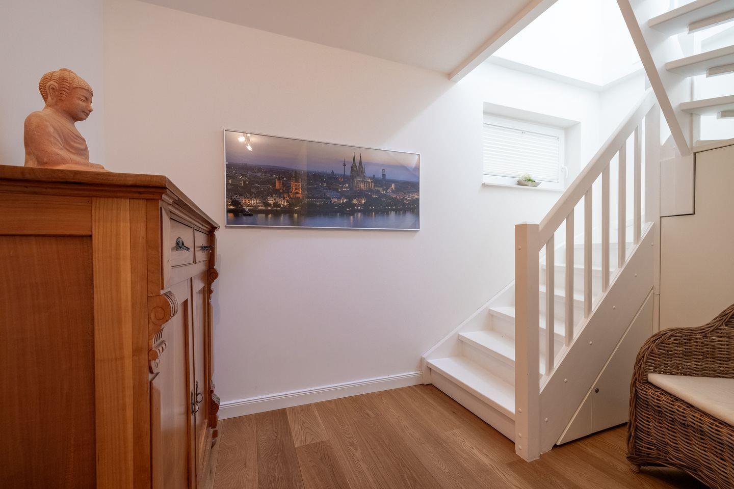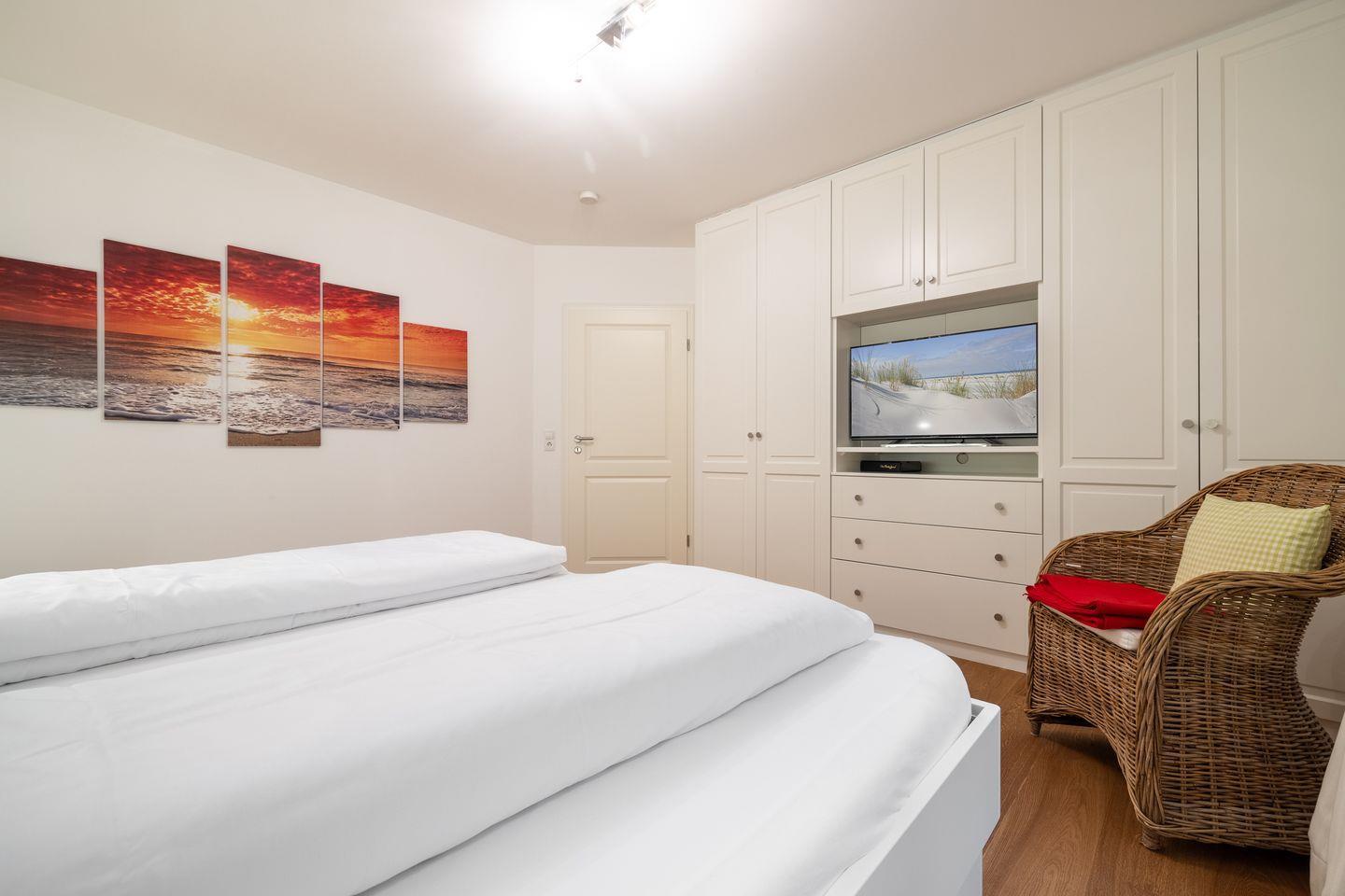 Obergeschoss: Im Obergeschoss steht Ihnen ein wunderschön gestalteter und luftiger Masterbedroom mit Doppelbett (ca. 200x200cm) und Flat-TV zur Verfügung. Hier wurde edles, fuß- und augenschmeichelndes Eichenparkett verlegt. Der kleine, geschützte Süd-Balkon lässt Sie bereits am Morgen die ersten Sonnenstrahlen inhalieren.
