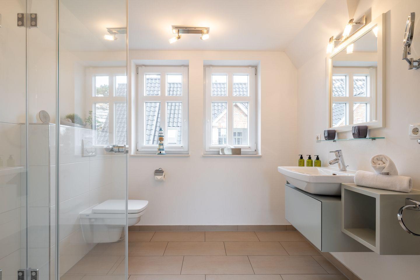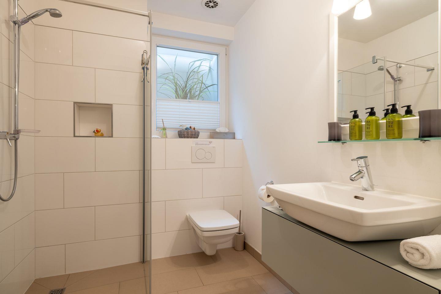 Freuen dürfen Sie sich auch über zwei Ihnen zur Verfügung stehenden Wohlfühlbädern, die Sie jeweils mit großen Duschen, Waschtisch und WC verwöhnen.