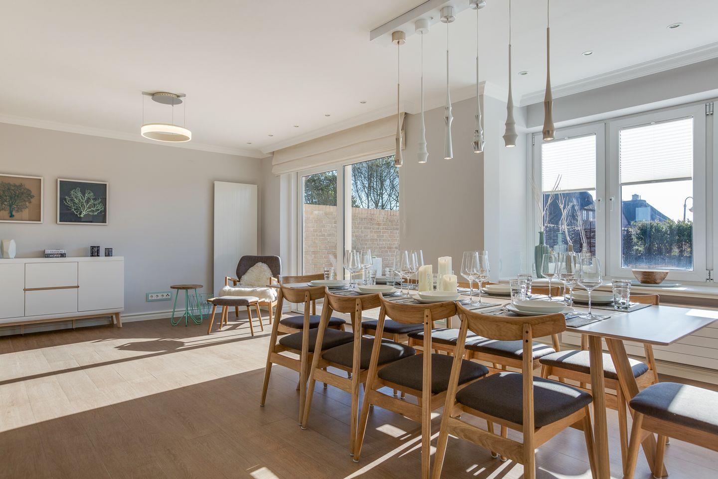 Dieses top-moderne Sylter Ferienhaus erwartet Sie in bester Lage in Wenningstedt auf der Nordseeinsel Sylt. Tauchen Sie ein in Ihren Urlaubstraum und genießen Sie die schönsten Stunden im Jahr, ohne dass es Ihnen an irgendetwas fehlt. Der helle Wohnraum mit Zugang zur Terrasse bietet Platz für die ganze Familie oder gemütliche Stunden vor dem Kamin mit Freunden. In der separaten Küche mit Induktionsherd und Backofen können Sie mit einem Urlaubsmenü Ihre Liebsten verwöhnen. Im Erdgeschoss finden Sie außerdem einen geräumigen Eingangsbereich, einen Schlafraum mit einem Einzelbett und ein Gäste-WC.