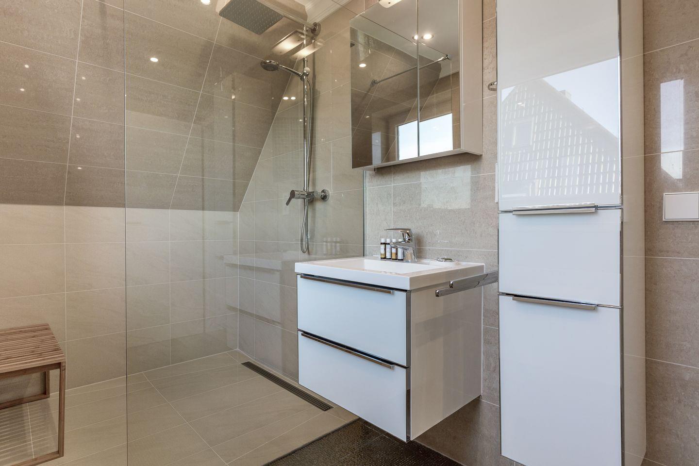 Im Obergeschoss des Hauses erwarten Sie zwei große Schlafräume mit je einem Doppelbett. Eines der Schlafzimmer verfügt über ein Bad en Suite mit Tageslicht, Badewanne und Regendusche. Ein weiteres Tageslicht-Bad mit Dusche ist vom Flur aus zu erreichen, außerdem finden Sie im Obergeschoss ein weiteres Schlafzimmer mit französischem Bett. Das Dachgeschoss des Hauses verfügt über ein Schlafzimmer mit zwei Einzelbetten sowie über einen weiteren Raum mit gemütlichem Sofa und Flatscreen-TV.