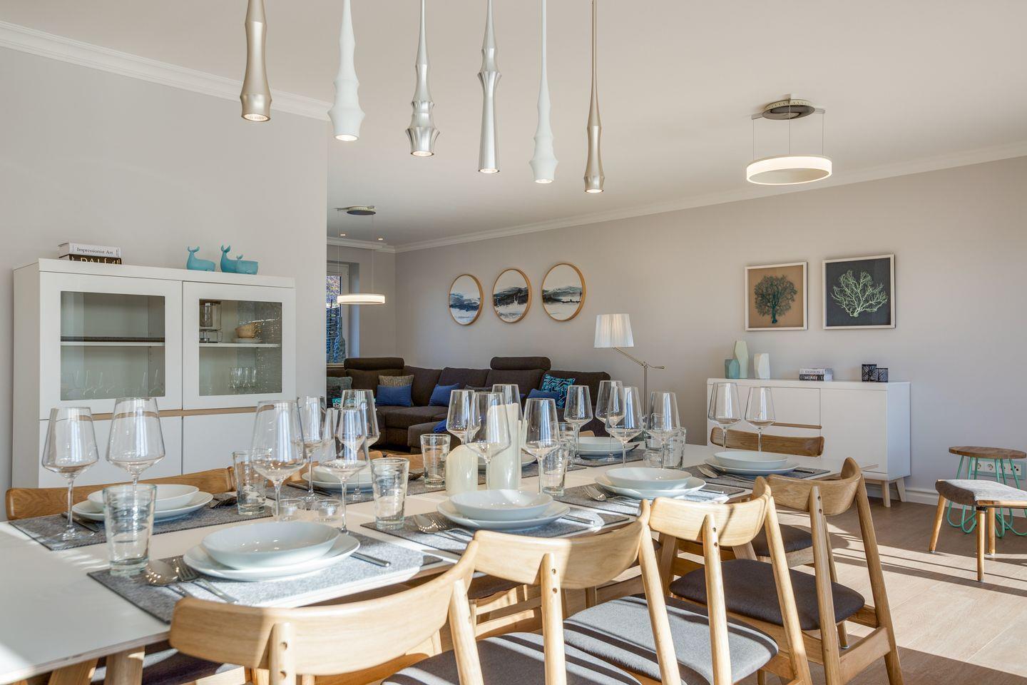 An Tagen, an dem das Wetter auf der Insel einmal nicht so mitspielt, können Sie sich in der Sauna im Untergeschoss entspannen und anschließend vielleicht ein gutes Buch auf der großen Sofalandschaft lesen?