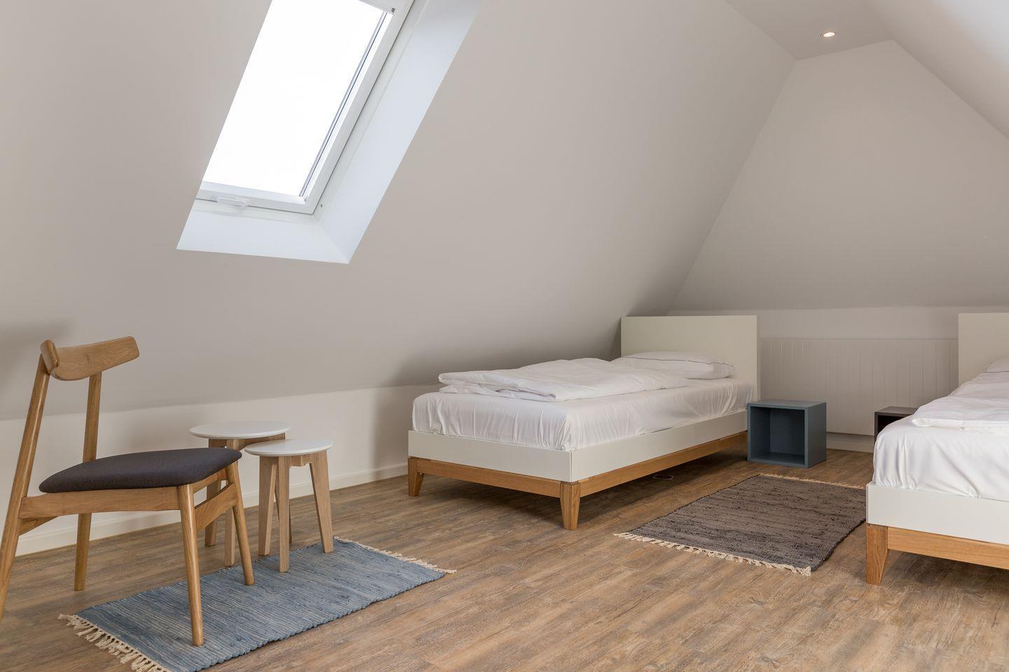 Dachgeschoss: 1 Raum mit 2 getrennten Betten (90 x 200 cm) und maßgeschneidertem Einbau-Kleiderschrank, ein Raum mit gemütlichem Sofa und Flatscreen-TV