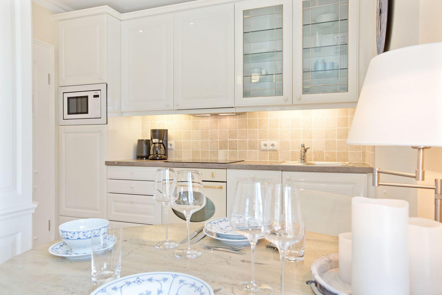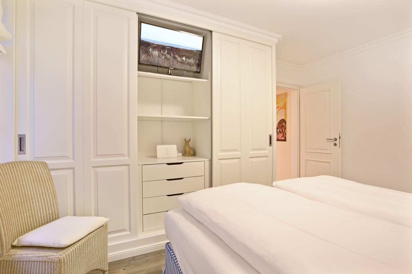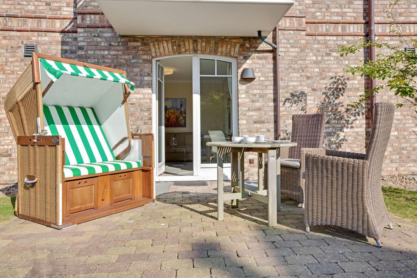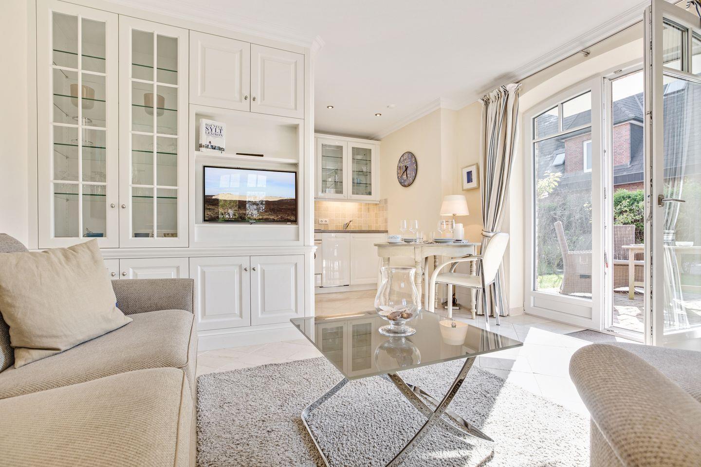 Innen überzeugt Ihr Domizil mit einer sehr geschmackvollen, wertigen Möblierung. Freuen Sie sich ebenfalls auf Ihre kleine Luxusküche und ein sehr schönes Wohlfühlbad. Ihre Westterrasse lässt Sie das Sylt-Open Air jederzeit genießen. Sogar Kunstfreunde kommen hier auf ihre Kosten, wurden die Souterrainbelichtungen mit Syltmotiven kunstvoll bemalt und inszeniert. Superb eben!