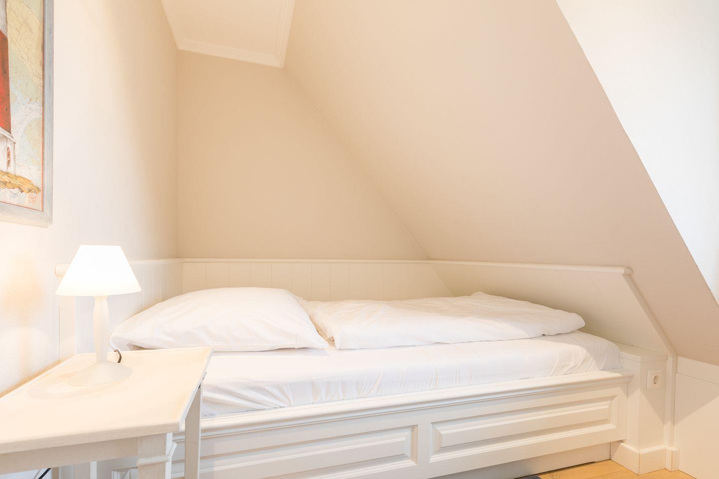 Wunderschöne Eichendielen, wohin das Auge auch fällt. Perfekte Tischlerarbeiten. Einmalige Lage, im Dachgeschoss sogar mit kleinem Meerblick. Eine gekonnte Melange aus kuscheligem Landhaus und Sylter Lifestyle.