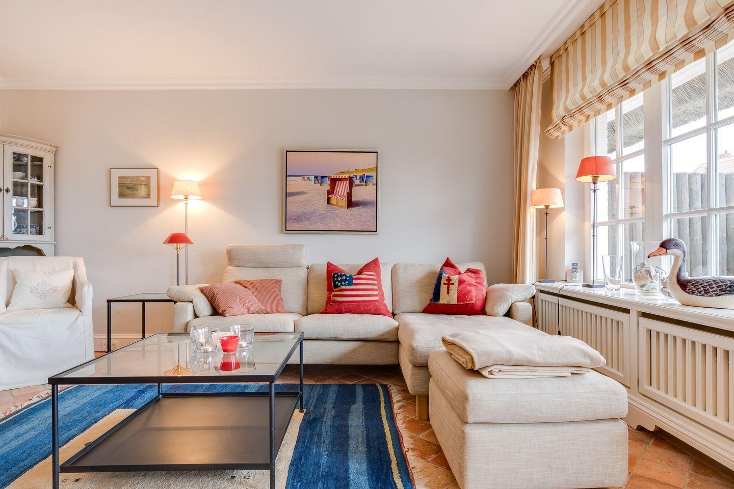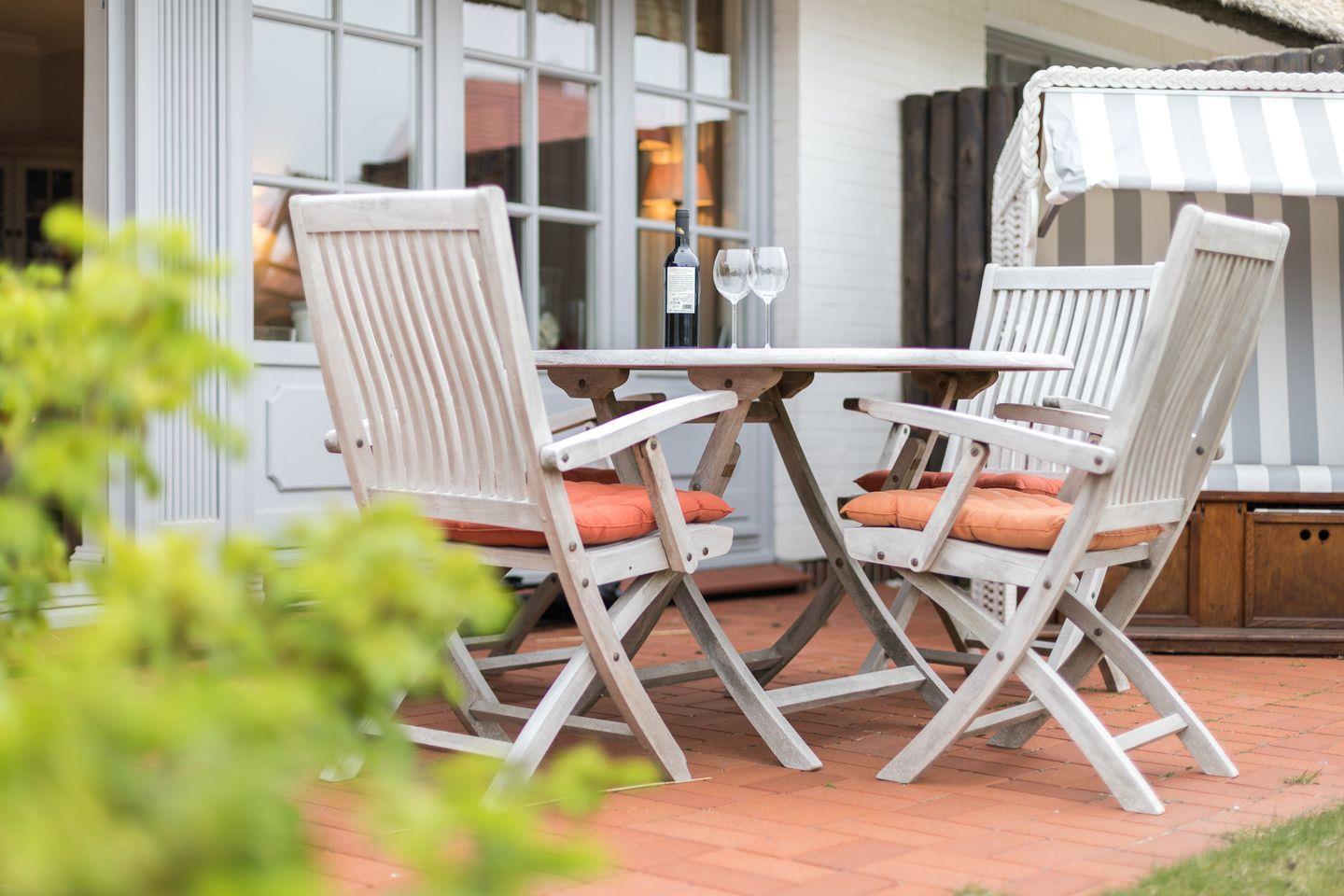 Charmantes Landhaus Arnika-Hof auf Sylt, nur 170 Meter vom Strand entfernt, mit Terrasse und modernem Komfort.