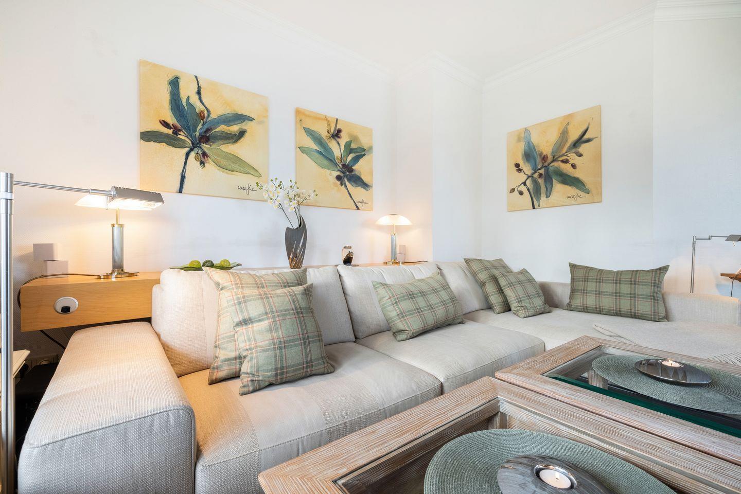 EG: Sehr geschmackvoll und hochwertig eingerichteter Wohnraum mit Kabel-TV, Hifi-Anlage und Telefon. Separate Küche mit Geschirrspüler, Microwelle und Backofen. Gäste-WC.