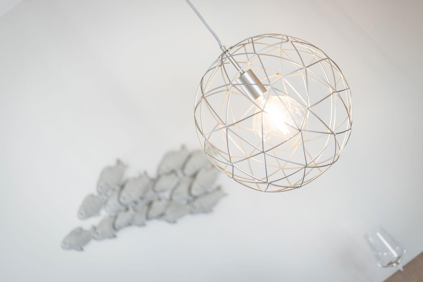 Obergeschoss: Wohnraum mit Flatscreen-TV, W-Lan, Radio und Blu-Ray Player, Essbereich, Küchenzeile mit Backofen-Mikrowellenkombination, Geschirrspülmaschine, Kaffee- und Kapselmaschine. Badezimmer mit Dusche und WC.