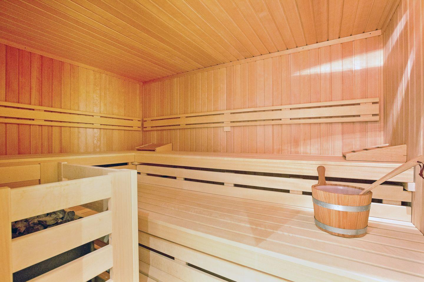 Freuen können Sie sich ebenfalls auf die schöne Saunalandschaft mit Dusche, WC und Liegebereich im Untergeschossbereich Ihres Domizils -Nutzung für das gesamte Haus/öffentlicher Bereich-.