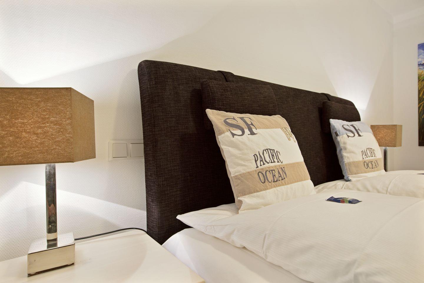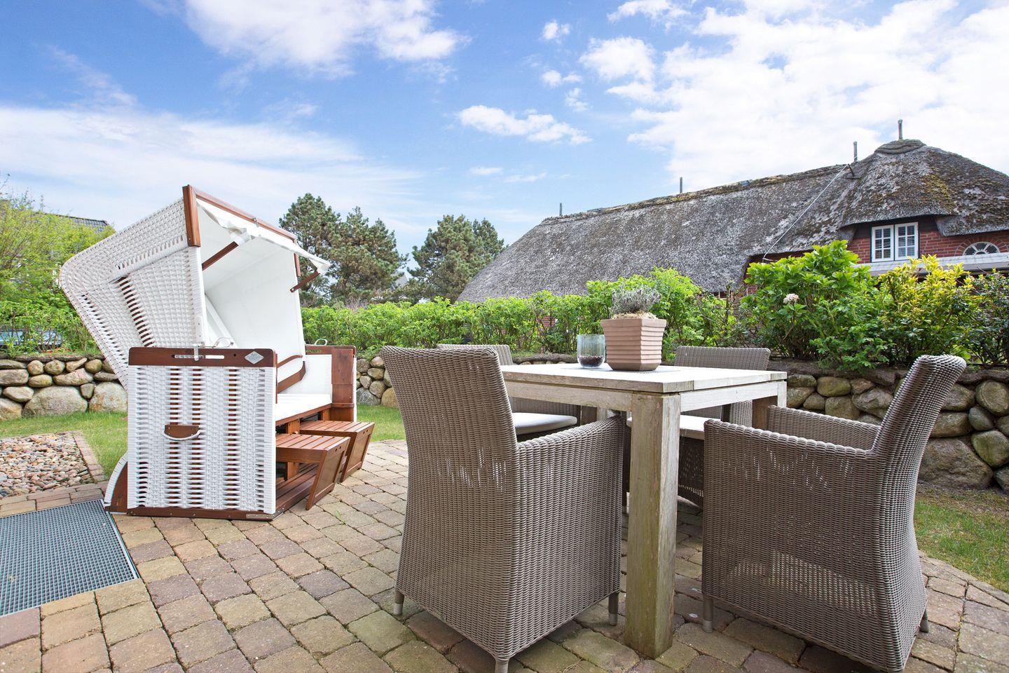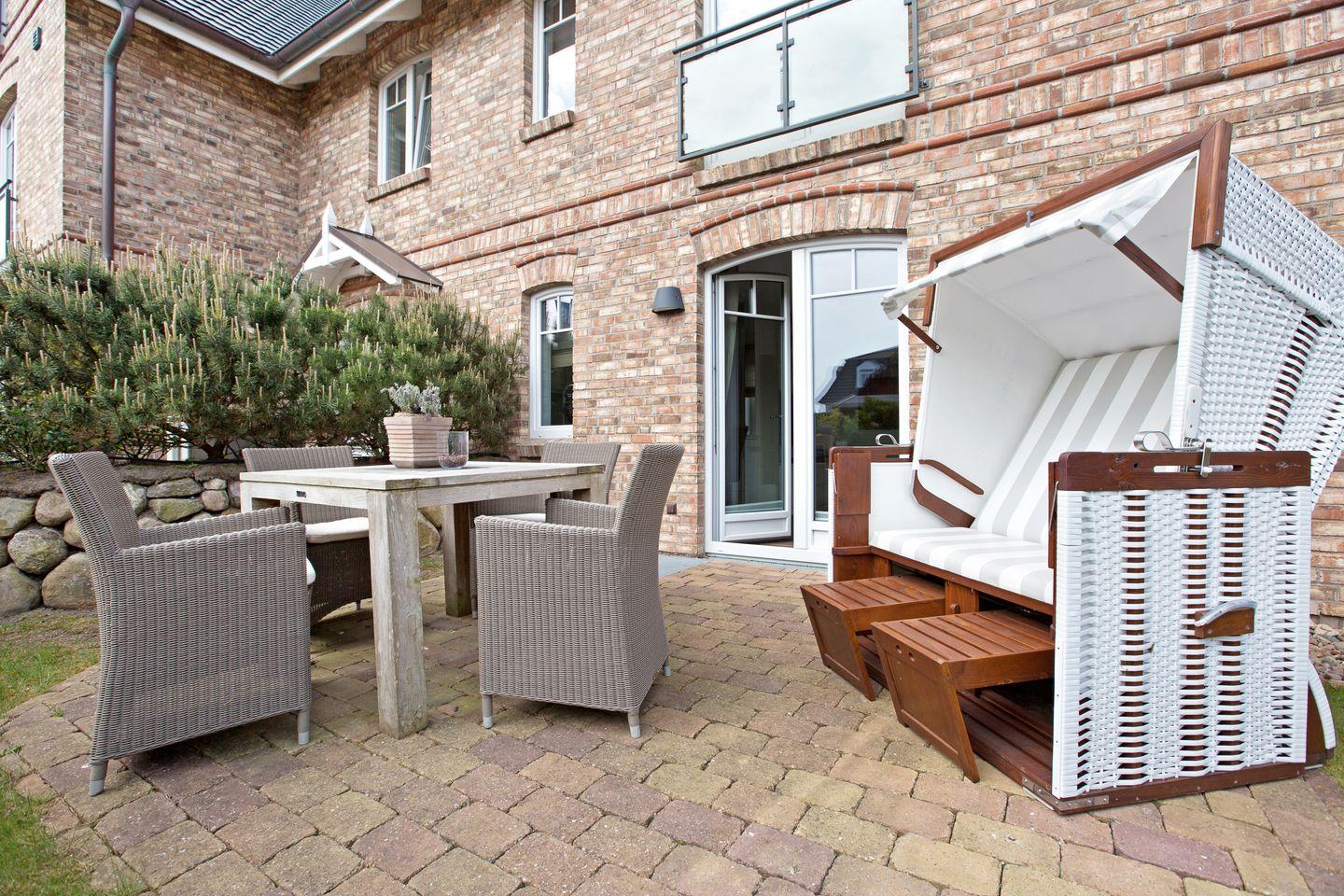 Geschmackvolle Original-Kunst schafft an Ihren Wänden ein stilvolles, schönes Urlaubsambiente. Ihre zum Osten ausgerichtete und daher optimal windgeschützte, kleine Terrasse mit Strandkorb lässt Sie z.B. morgens draußen toll frühstücken.