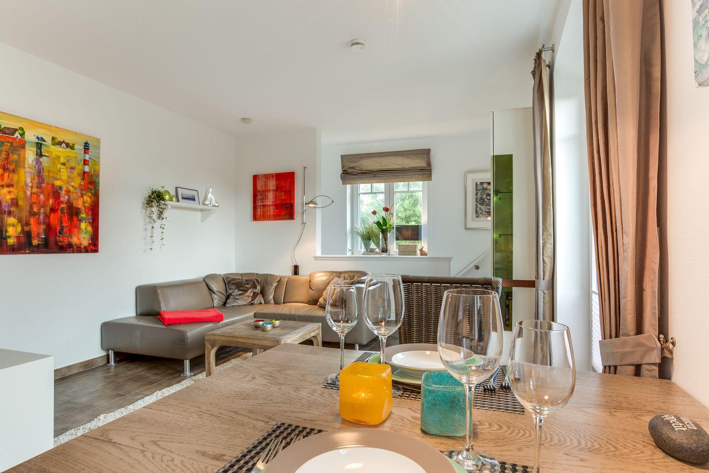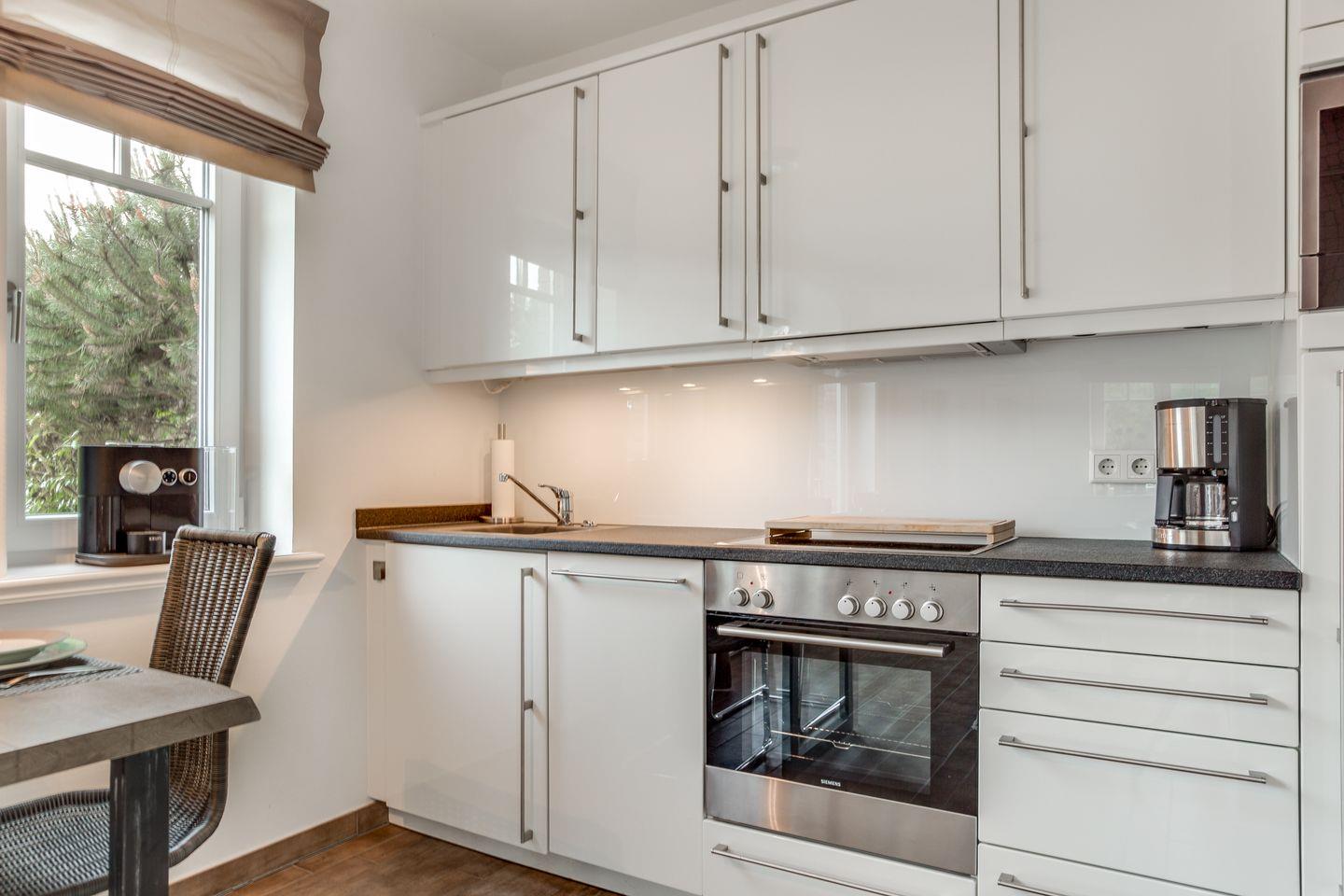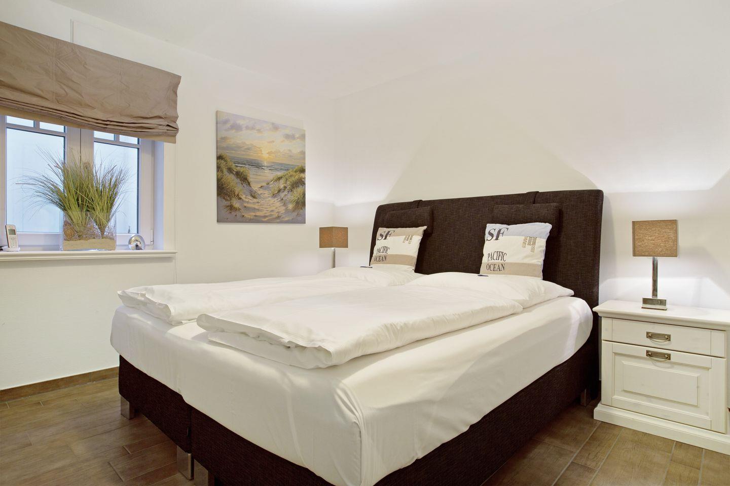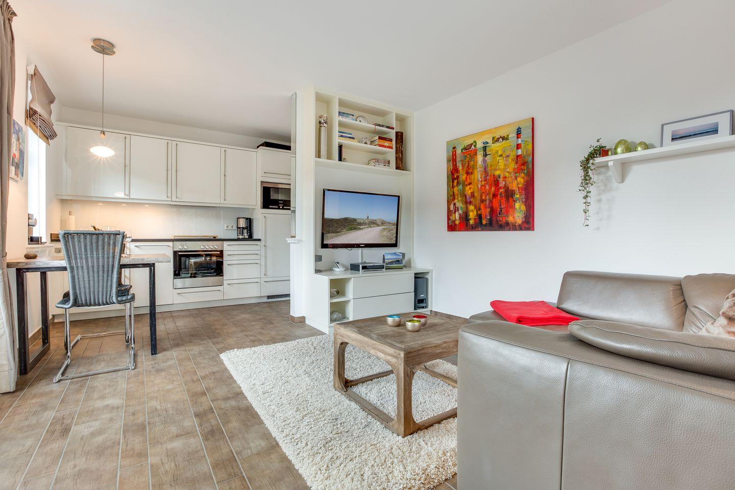 Geschmackvolle Original-Kunst schafft an Ihren Wänden ein stilvolles, schönes Urlaubsambiente. Ihre zum Osten ausgerichtete und daher optimal windgeschützte, kleine Terrasse mit Strandkorb lässt Sie z.B. morgens draußen toll frühstücken.