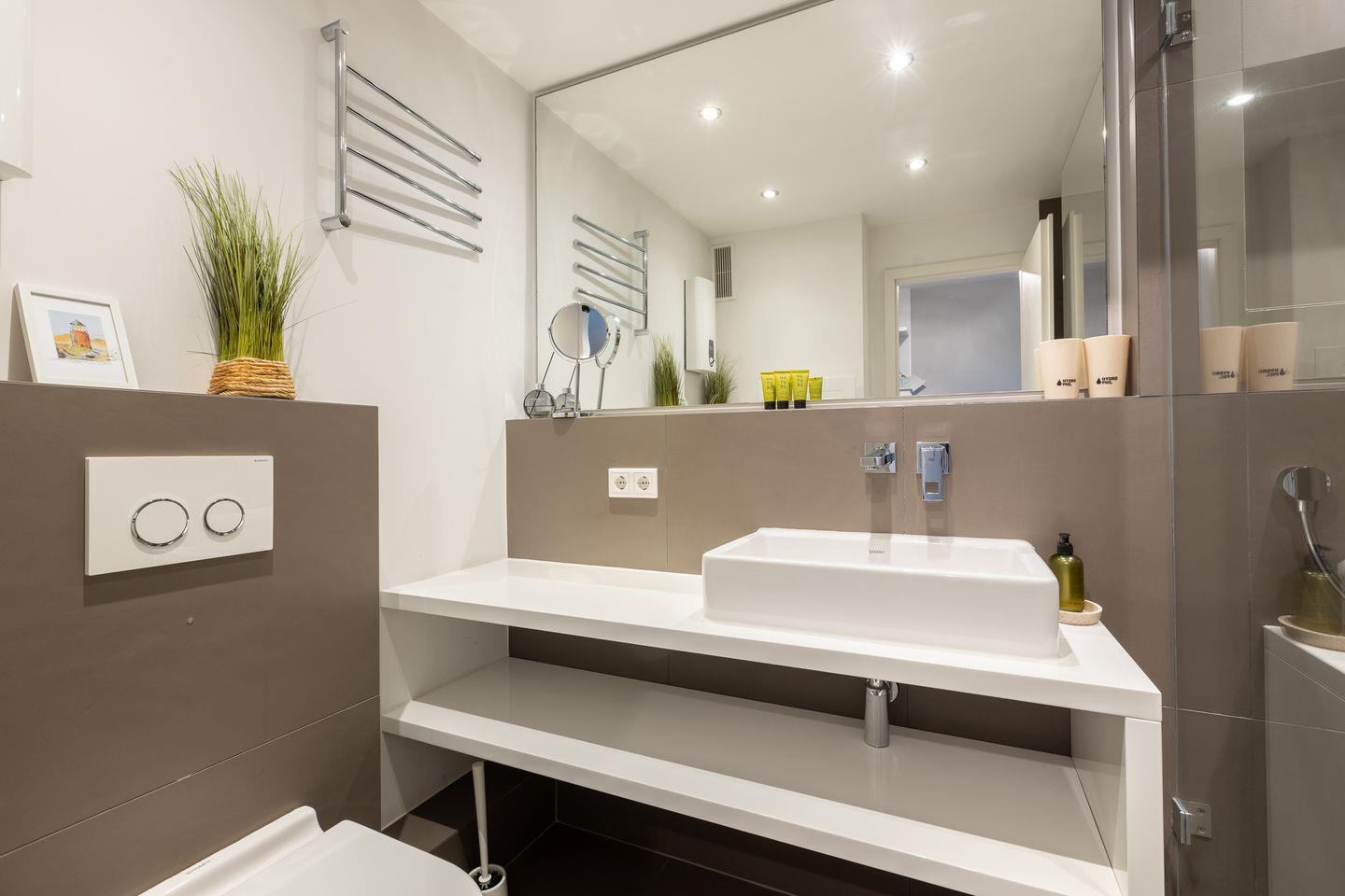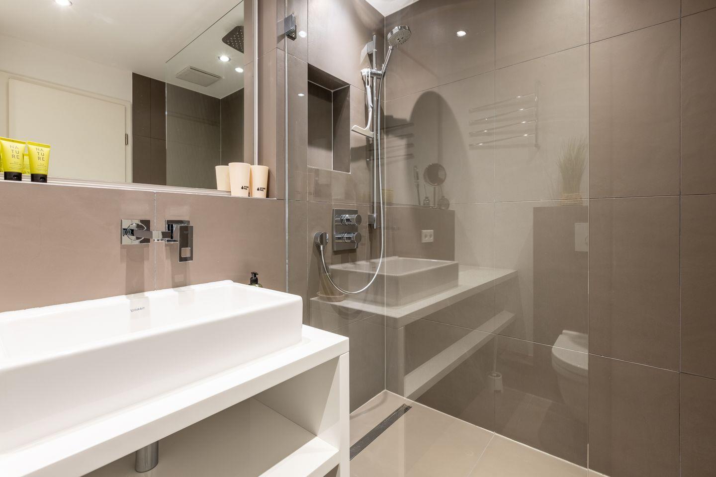 Der großzügige Wohn- und Schlafbereich (ca. 26?m²) ist ausgestattet mit einem komfortablen Boxspringbett (160x200?cm), Flatscreen-TV sowie einem Teufel Digital-Radio mit 360°-Sound und Bluetooth. Der Essbereich besticht durch Designklassiker. Die breite Fensterfront zur Westseite erstreckt sich über die gesamte Wohnbreite und lädt mit einer gepolsterten Fensterbank, einem gemütlichen Lesesessel und einer feinen Bücherauswahl zum Verweilen ein. Die offene Küchenzeile verfügt über Cerankochfeld, Kühlschrank, Geschirrspüler, Kaffee- und Nespresso-Maschine, Wasserkocher und Toaster. Im Eingangsbereich befinden sich großzügige Kleiderschränke und eine Garderobe. Das moderne Badezimmer ist mit einer bodengleichen Dusche und Handtuchheizkörper ausgestattet.