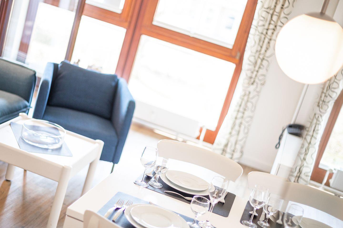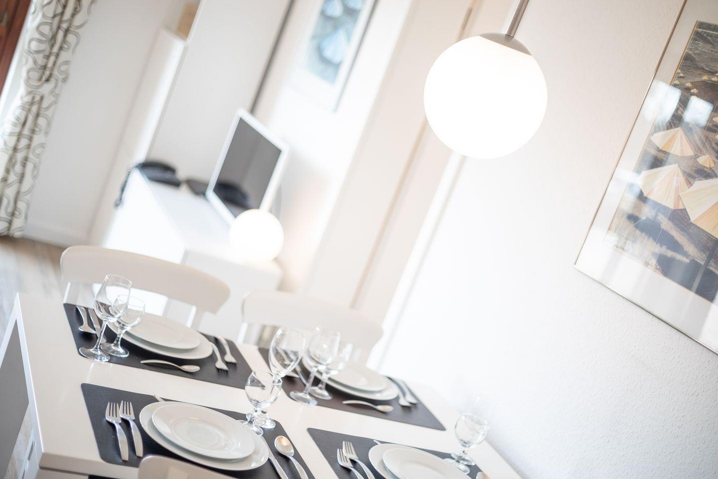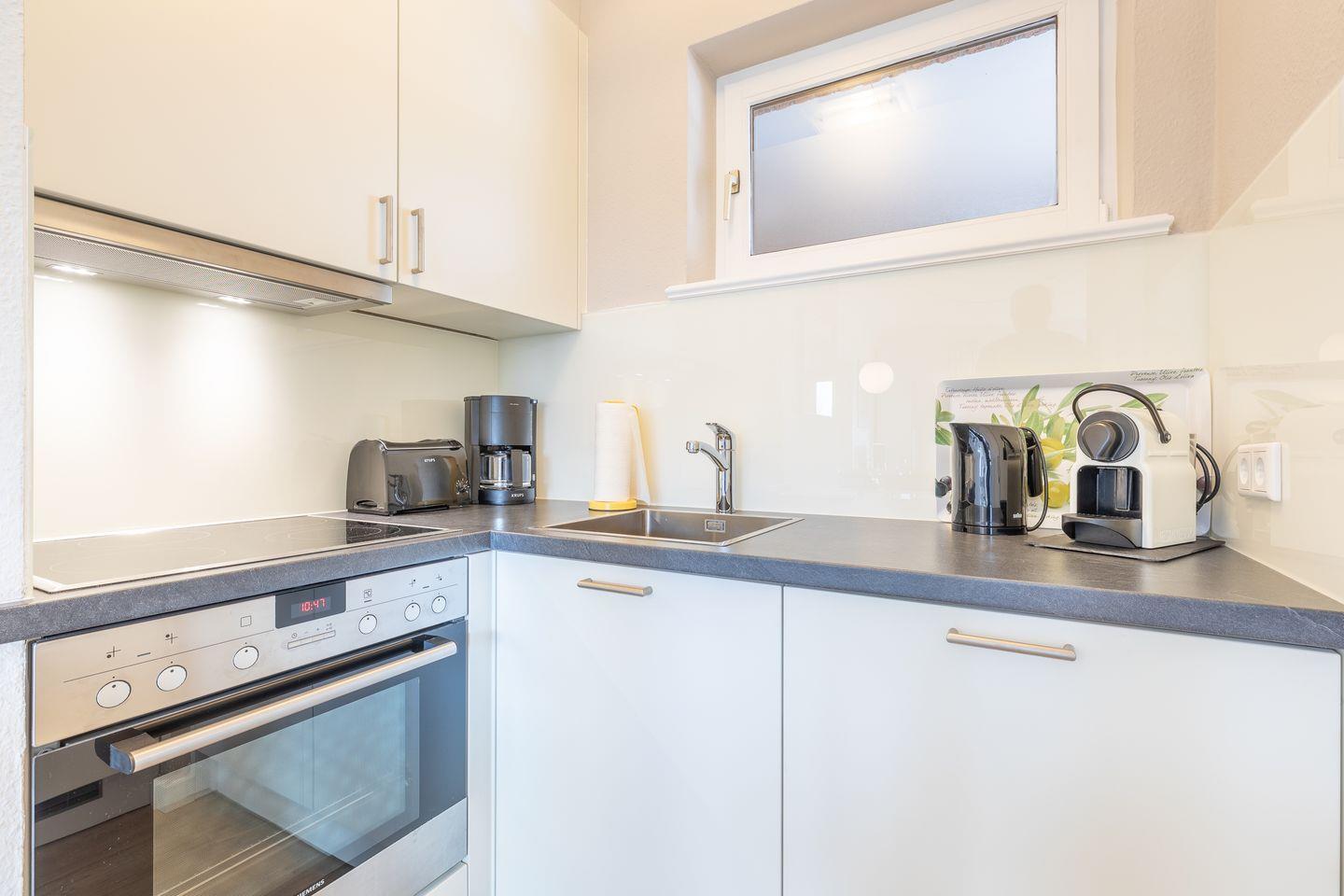 Wohnraum mit Flatscreen-TV, Telefon inklusive Flatrate ins Festnetzt der Deutschen Telekom und einem WLAN-Anschluss. Fußboden mit hochwertigen Design Project Floor. Küchenzeile mit Cerankochfeld, Backofen, Wasserkocher, Kaffeemaschine, Nespressomaschine und Geschirrspüler. Badezimmer mit Dusche/WC, sowie 1x Süd-Balkon mit Gartenmöbeln (ca. April - Oktober). Sep. Elternschlafzimmer mit Doppelbett (1,80x200cm) und ein weiterer Raum mit Doppelbett (180x200cm) und einem Flatscreen-TV, separates Badezimmer mit Dusche /WC. 1 zusätzlicher Süd-Balkon mit Gartenmöbeln (ca. April - Oktober), lädt auch hier zum Entspannen ein.
