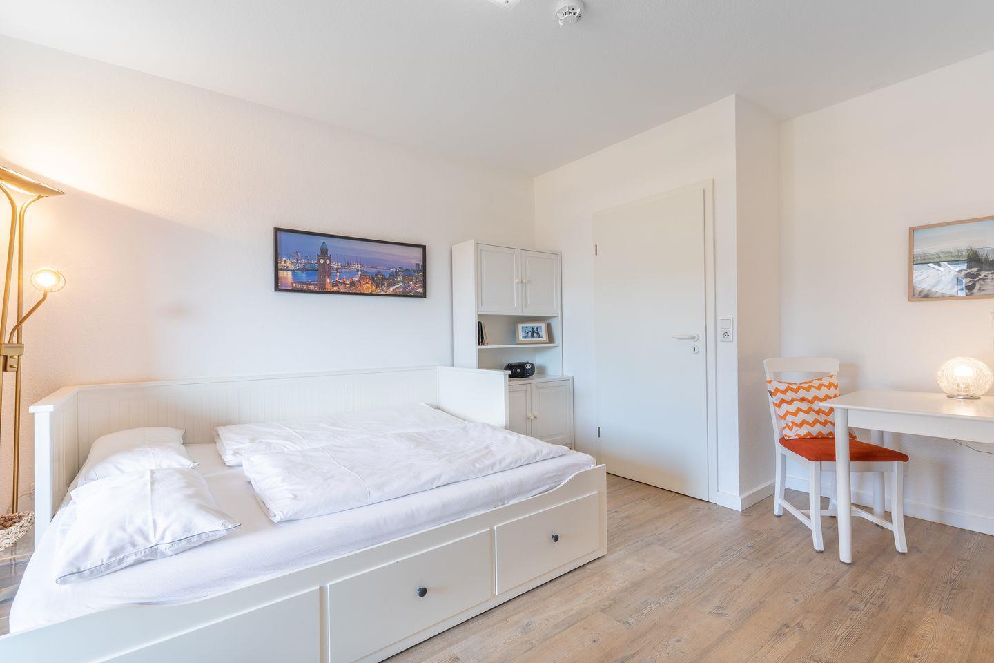 Nur wenige Schritte zum idyllischen Wenningstedter Dorfteich, sowie zu Ihren Frühstücksbrötchen und Vielfaltgastronomie. Entspannen Sie sich in dem Appartement – es erwarten Sie schöne Urlaubstage in behaglicher Atmosphäre im Herzen Wenningstedts.