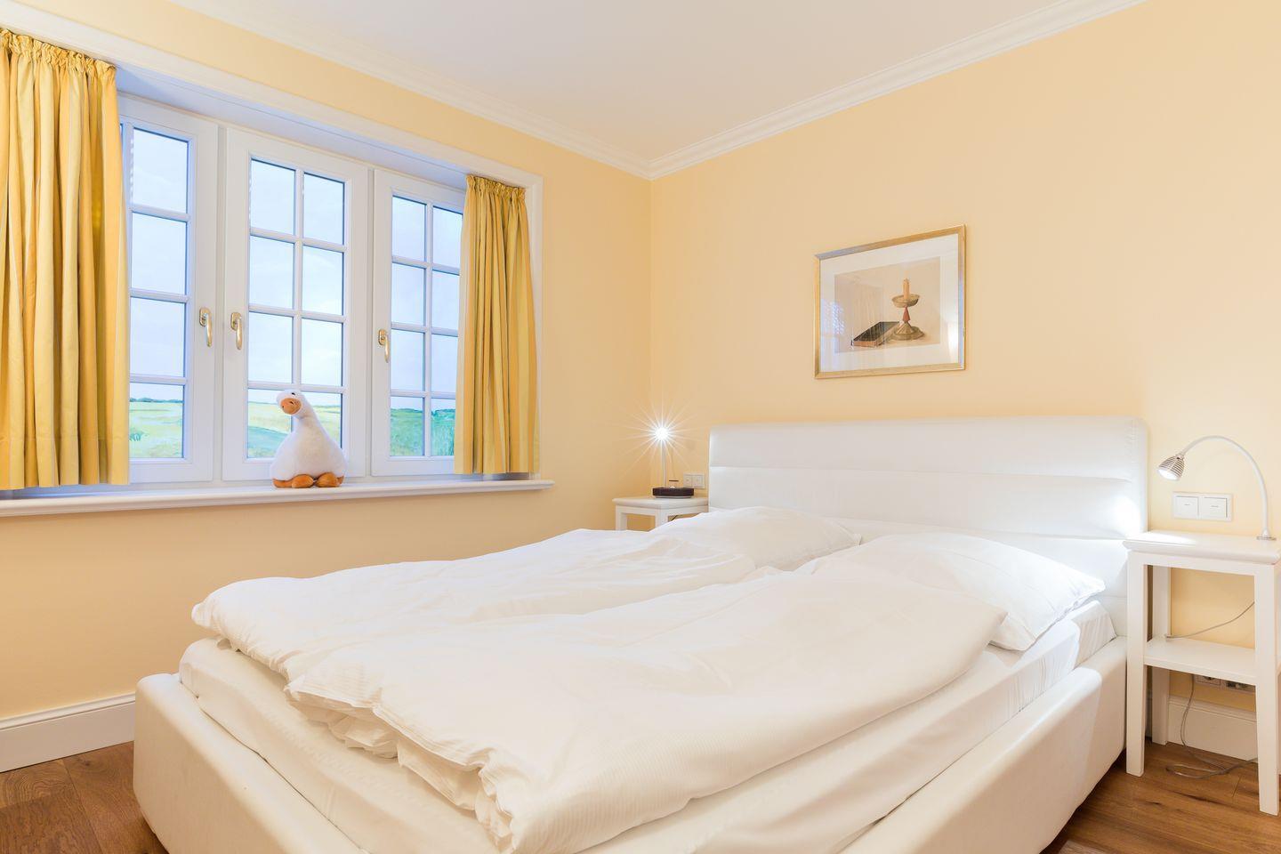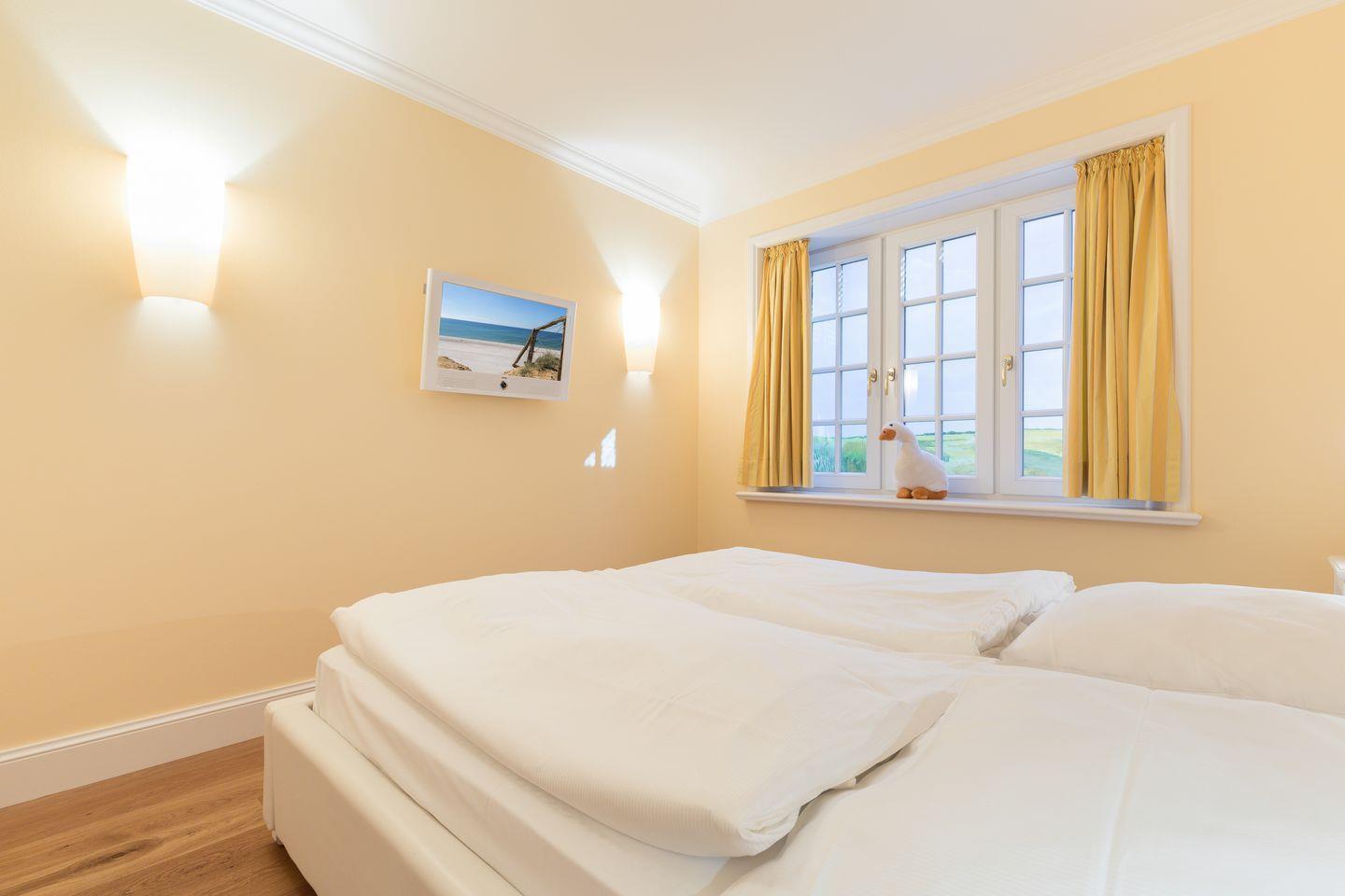 UG: Im Untergeschoss befinden sich drei sehr schön und wertig gestaltete Räume, jeweils mit Doppelbett (200x200cm, 160x200cm & 180x200cm), viel Schrankplatz und Flat-TV. Desweiteren erwarten Sie zwei Wohlfühlbäder. Eines davon mit großer Dusche und WC, das andere mit Badewanne und wohltuender Wärmekabine. Freuen Sie sich auf die bemalten Lichtschächte des Untergeschossbereichs, die durch verschiedene Sylter Motive eine ganz besondere Atmosphäre schaffen. Waschküche mit Waschmaschine und Trockner.