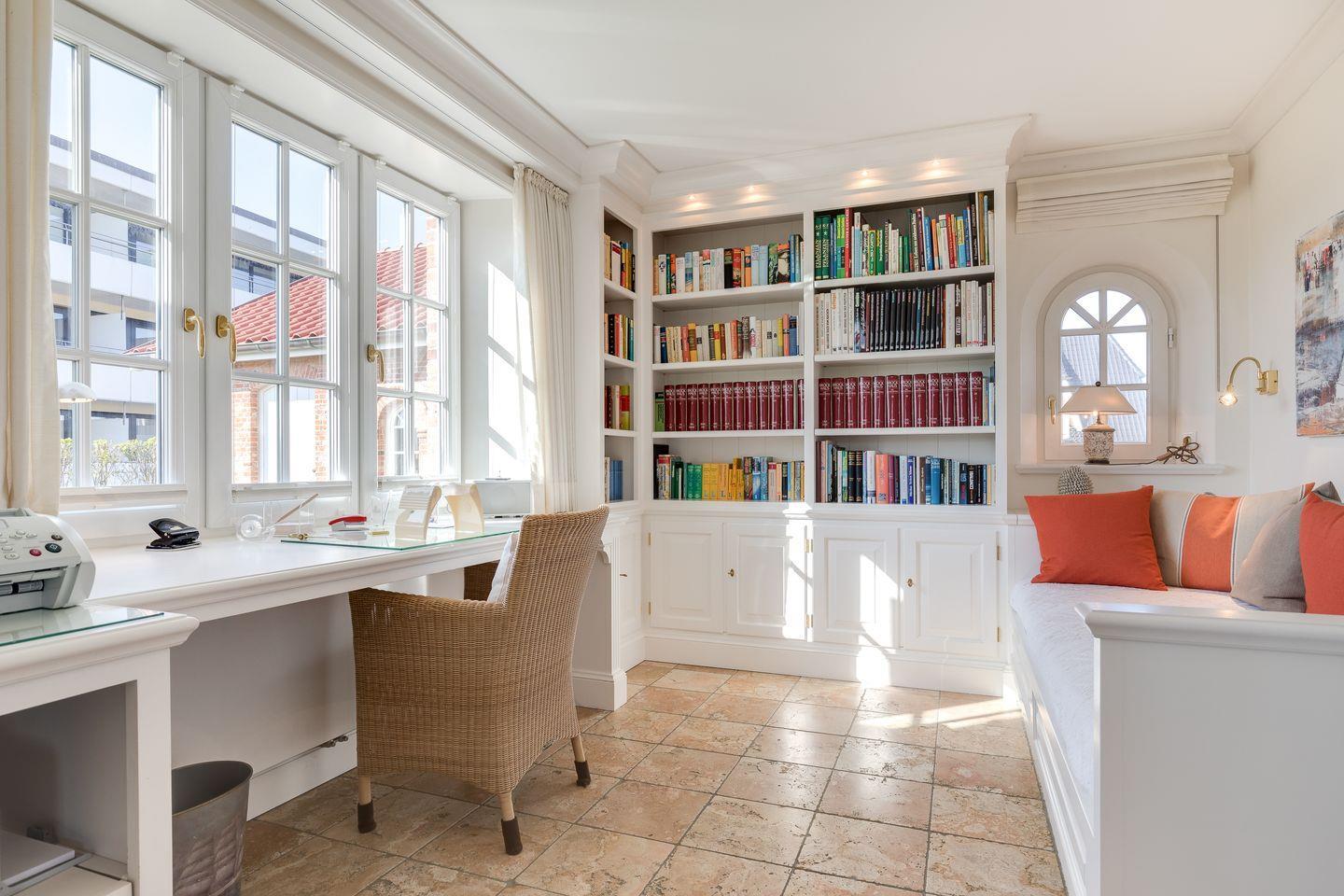 EG: Großzügiger, lichtdurchfluteter Wohnraum mit wunderschöner großer Esstafel. Schöne Sitzecke mit Flat-TV und BOSE-Hifi. Ipod Dock. Optisch getrennte, großzügige Küche mit überkompletter Ausstattung. Gäste-WC mit Dusche. Desweiteren befindet sich im Erdgeschoss ein Raum, den man ideal als Rückzugsort zum Lesen, Arbeiten, Relaxen oder Tagträumen nutzen kann. Sehr schöner Open-Air Bereich mit großer Terrasse, Gartenmöbeln und Strandkorb (ca. von April–Oktober).