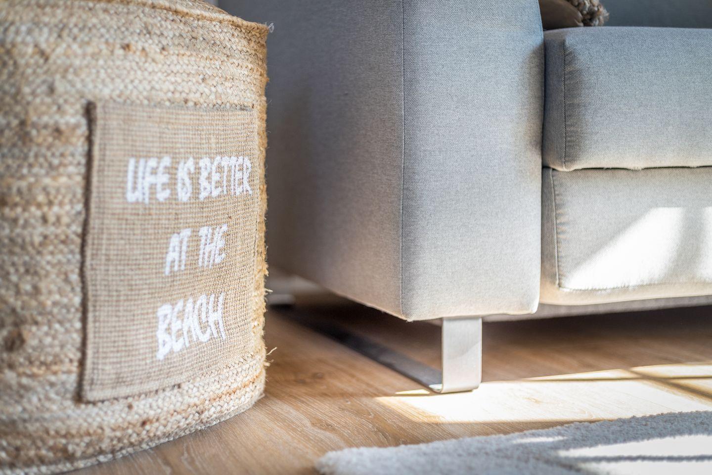 Sobald Sie den Wohnraum des Appartements betreten, werden Sie durch Beach-Ambiente und eine sehr geschmackvolle Einrichtung in Sylt-Urlaubsstimmung gebracht. Auf der gemütlichen Couch können Sie entspannen oder Ihre Lieblingsserie auf dem Flatscreen-TV schauen. Ein kleiner Essbereich und eine offene, voll ausgestattete Küche laden zum Kochen und gemeinsam Genießen ein. Vom Wohnbereich aus betreten Sie den kleinen, sonnigen Südbalkon, der ca. von April bis Oktober möbliert ist. Auf gleicher Etage befindet sich das Tageslichtbadezimmer, das mit Dusche und WC ausgestattet ist.