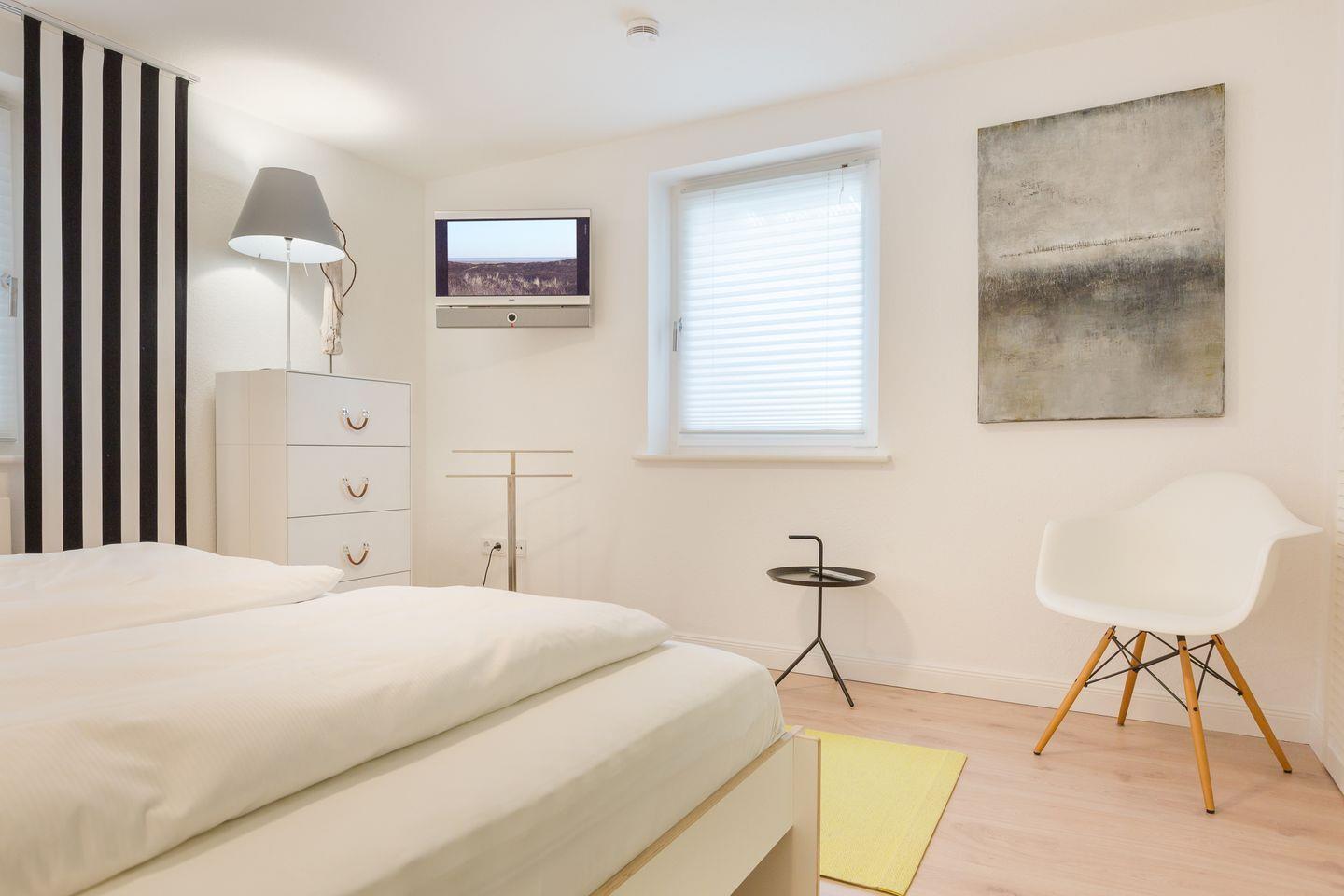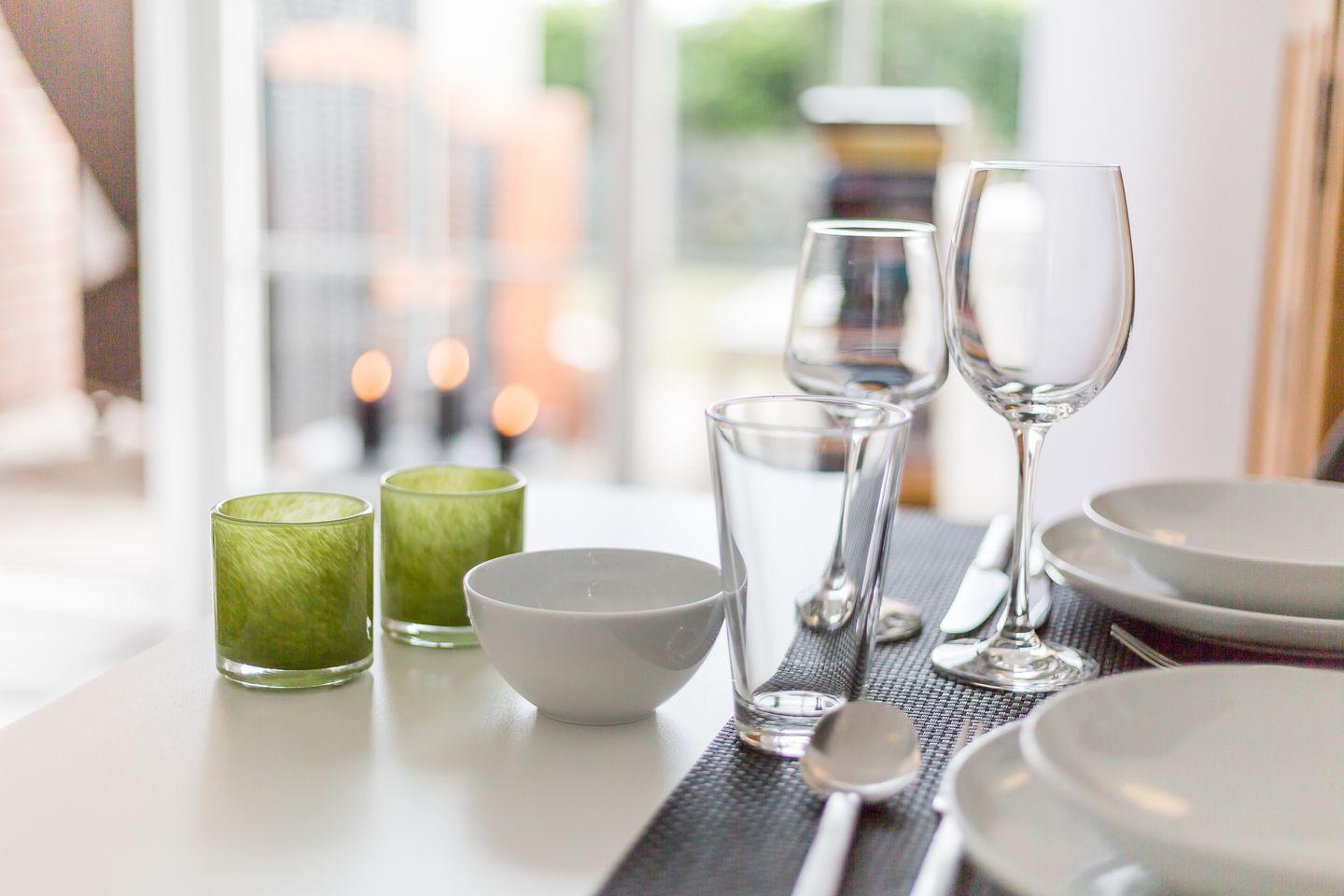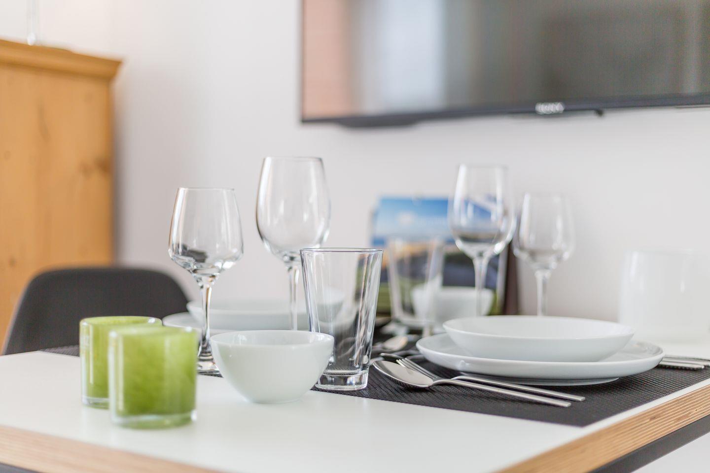 Das Wohnzimmer bietet Ihnen eine gemütliche Couchecke, einen Flatscreen-TV (kostenlose Sky- und Netflix-Nutzung) und einen kleinen, schicken Essbereich. Die offene Küche ist voll ausgestattet, sodass Ihren Urlaubs-Kochkünsten nichts mehr im Wege stehen sollte. Im Erdgeschoss steht Ihnen außerdem ein Gäste-WC zur Verfügung.