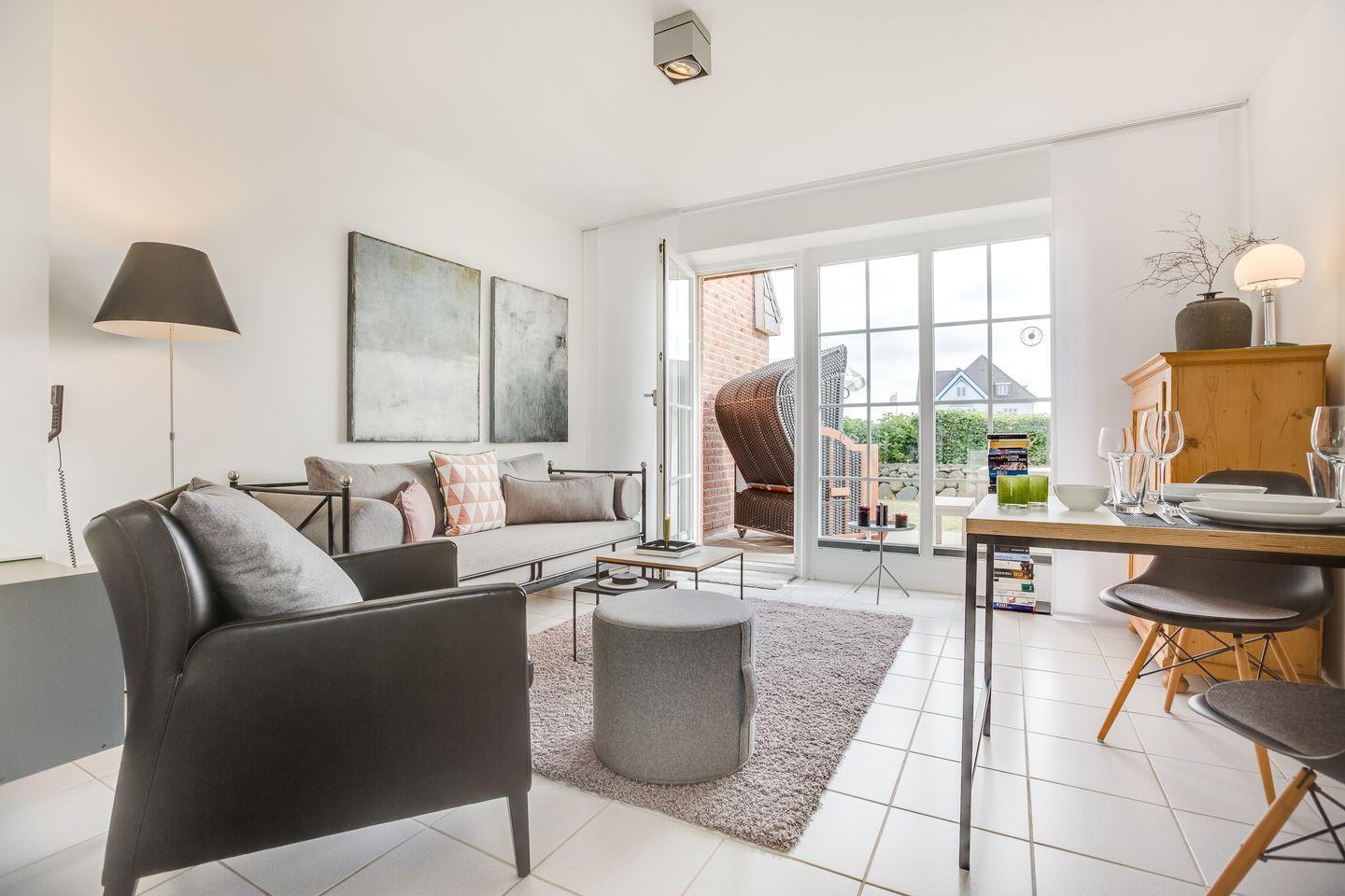 Genießen Sie dieses helle, modern eingerichtete Appartement mit viel Komfort für Ihren Traumurlaub. Beim Betreten des Domizils erwartet Sie ein großzügiger Wohnraum mit Zugang zur Terrasse, auf der Sie im Sommer die Sylter Sonne im typischen Strandkorb genießen können.