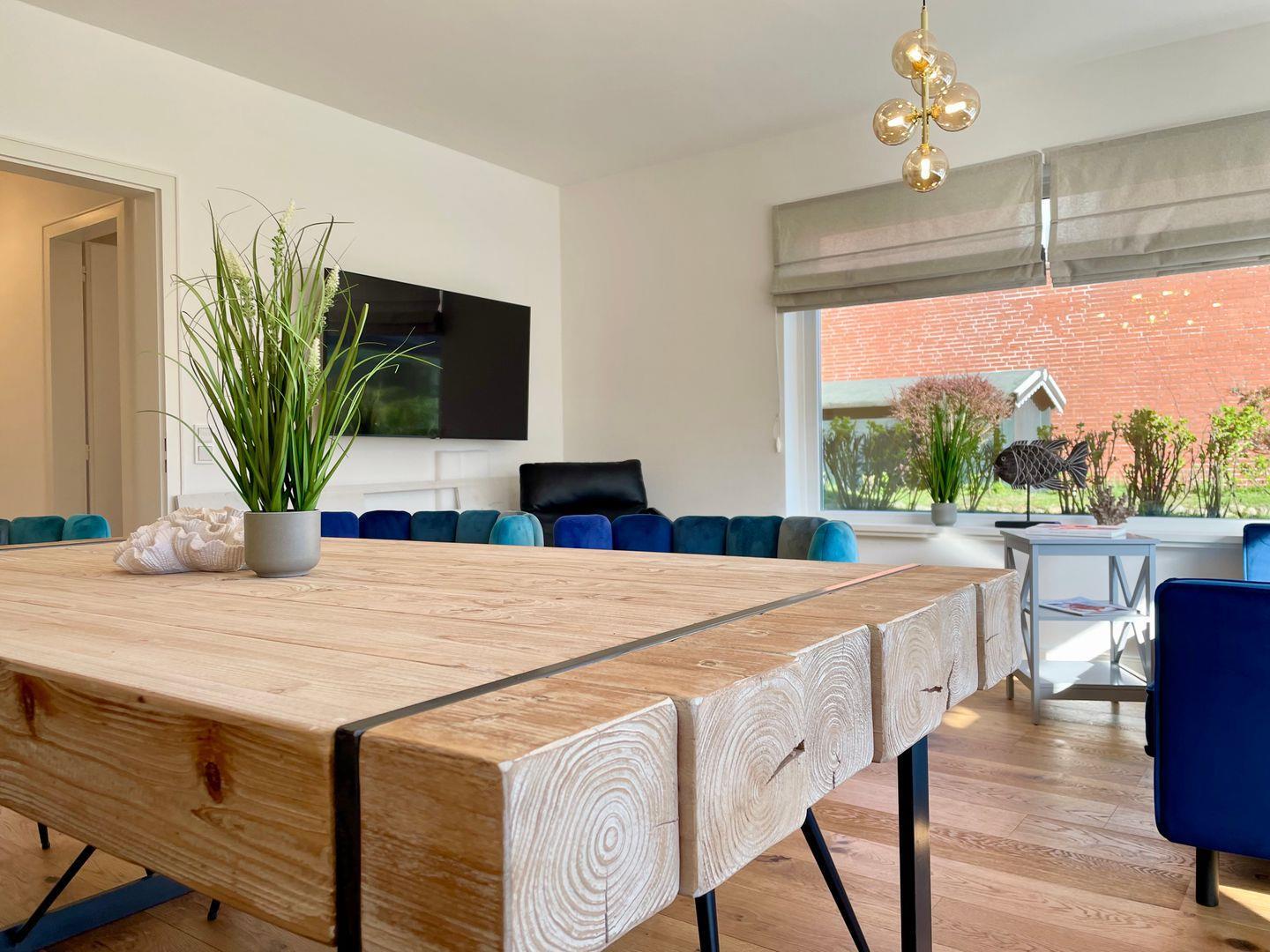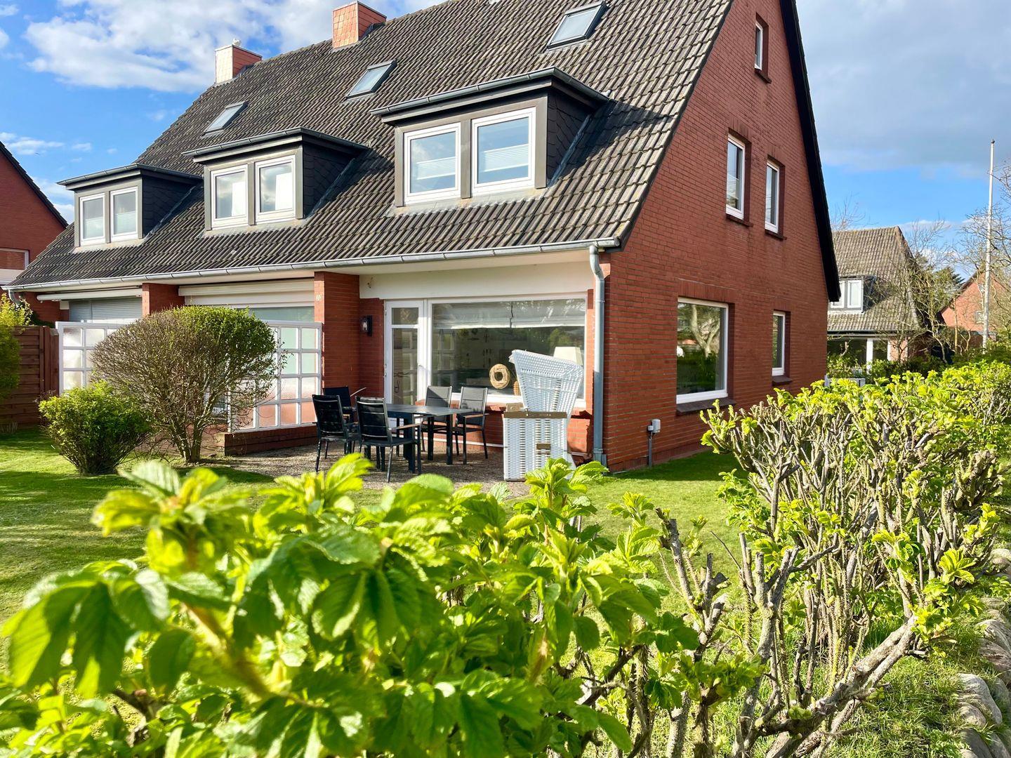 Das kernsanierte und modern renovierte ca. 100 m² große Reihenendhaus für bis zu 6 Personen befindet sich in einer ruhigen Lage von Wenningstedt und bietet einen guten Ausgangspunkt um sowohl den Strand als auch die Stadt fußläufig gut zu erreichen. Das Erdgeschoss bietet Ihnen einen Wohn- und Essbereich mit toller Fensterfront und Blick in den eigenen Garten. Die helle, separate Küche samt Geschirrspüler ist voll ausgestattet. Das moderne Duschbad ist mit einer bodentiefen Dusche ausgestattet. Im Obergeschoss erwartet Sie ein großzügiges Doppelschlafzimmer mit einem Schreibtisch. Das andere Schlafzimmer auf dieser Etage bietet ein Einzelbett, welches sich bei Bedarf zu einem Doppelbett (160 cm) ausziehen lässt. Das Duschbad ist ebenfalls mit einer bodentiefen Dusche ausgestattet. Im Dachgeschoss erwartet Sie ein weiteres großzügiges Doppelschlafzimmer. Alle Schlafräume sowie das Wohnzimmer sind mit Smart-TVs ausgestattet. Nutzen Sie gerne die schöne Südterrasse mit angrenzendem Garten und Strandkorb (in der Saison). WLAN sowie ein zugehöriger PKW-Stellplatz sind vorhanden. Eine Waschmaschine und ein Trockner stehen Ihnen ebenfalls zur Verfügung. Haustiere sind erlaubt.