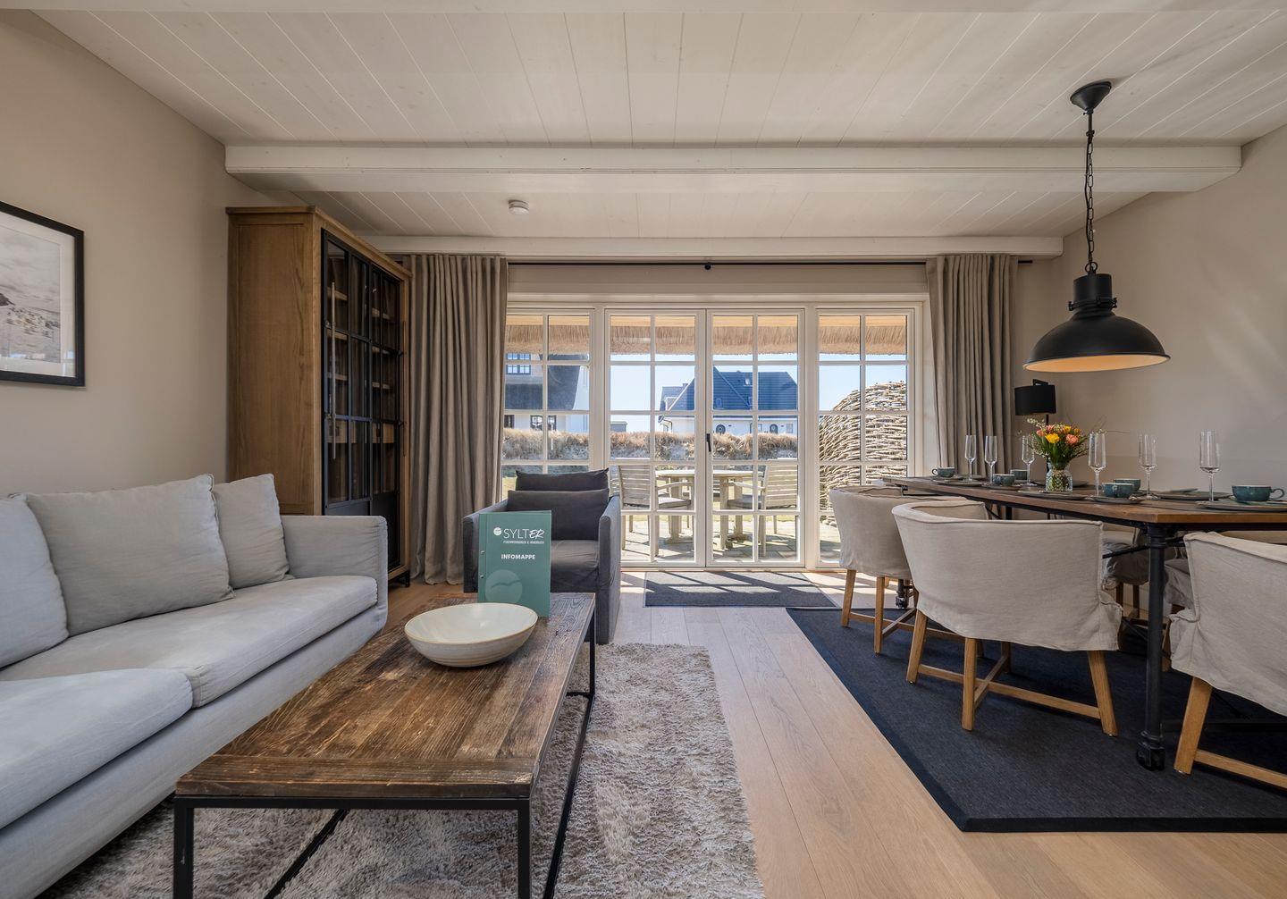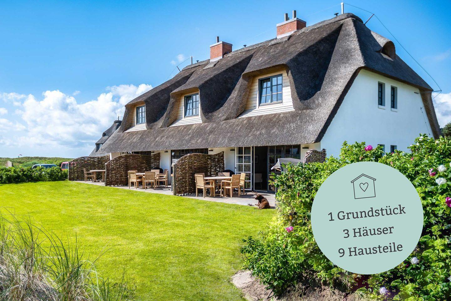 Dieses großzügige Luxus-Hausteil unter Reet befindet sich auf einem traumhaften Grundstück in unmittelbarer Strandnähe in Wenningstedt. Das Feriendomizil wurde zuletzt im Jahr 2022 aufwendig saniert und liebevoll mit wertvollen Materialien und hochwertigen Möbeln eingerichtet.