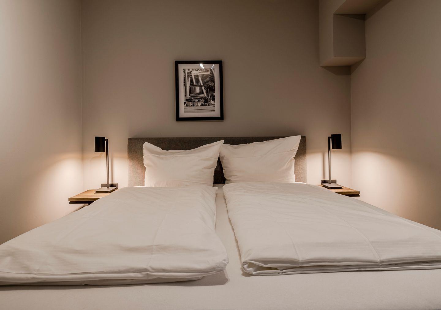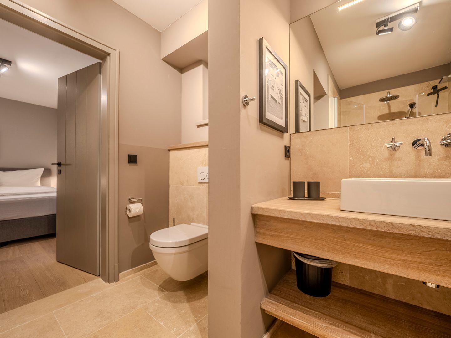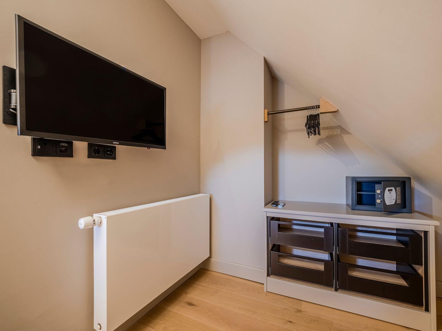 Zwei Doppelschlafzimmer und ein Schlafzimmer mit zwei Einzelbetten (80 cm x 200 cm/unter Dachschrägen - steile Treppe), die sich auch mittig zusammenstellen lassen. Alle Schlafzimmer verfügen über ein TV-Gerät, Hotelsafe, Verdunkelungsmöglichkeiten für die Fenster und Stauraum in Form von Kommoden, Garderoben oder Einbauschränken für Kleidung und persönliche Dinge. Das größte Schlafzimmer bietet einen kleinen Schreibbereich, der auch mobiles Arbeiten im Urlaub ermöglicht, einen begehbaren Kleiderschrank und Meerblick.