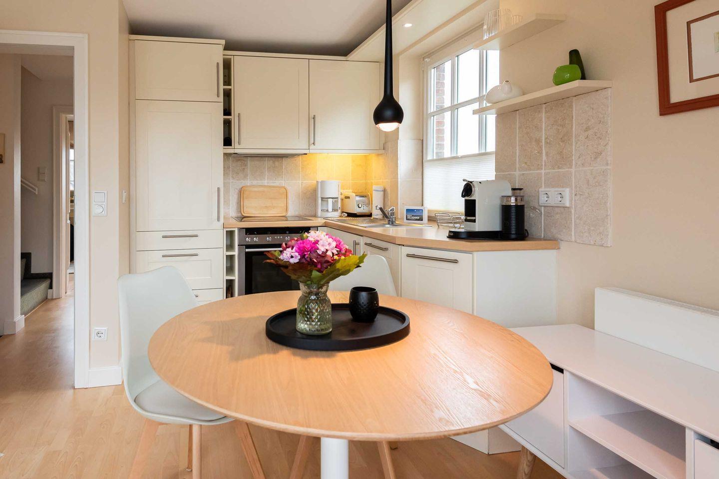 Im lichtdurchfluteten Obergeschoss befindet sich eine offene und gut ausgestattete Küche, die direkt an einen komfortablen Wohn- und Essbereich angrenzt: