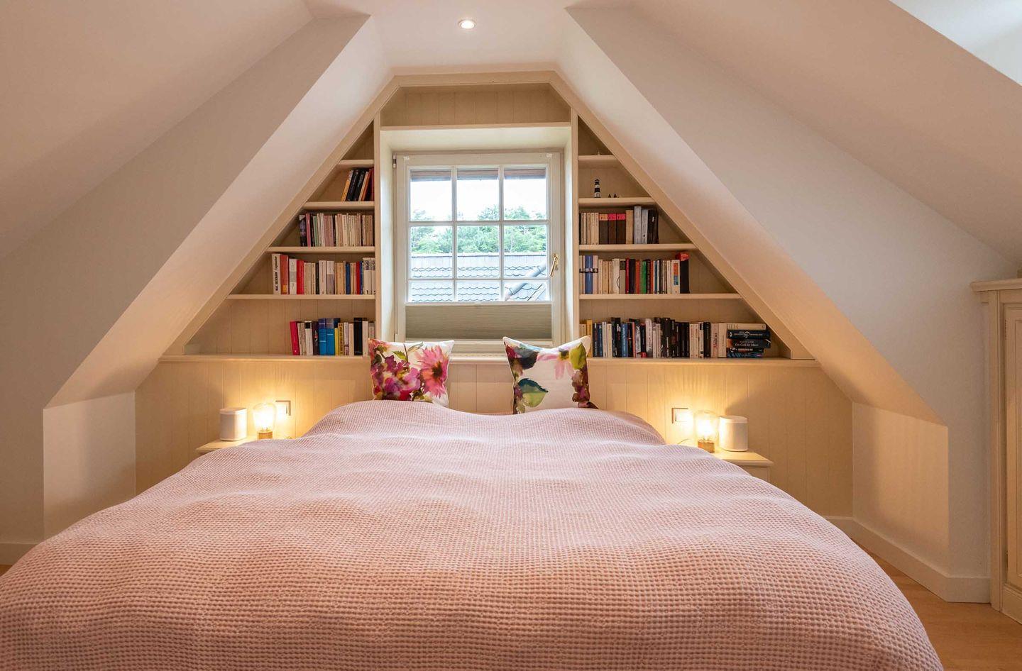 Eine weitere gut begehbare mit Treppengeländer führt in das offene Dachgeschoss mit großem Giebel- und Dachfenster:
