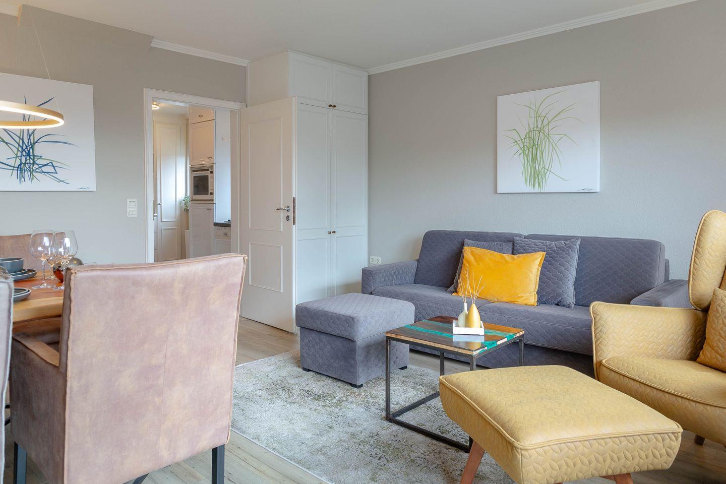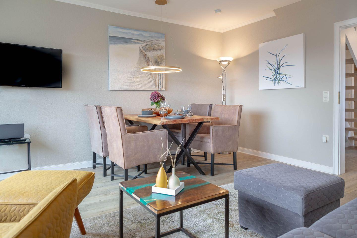 Moderne 3-Zimmer-Ferienwohnung "Strandläufer A1" in Wenningstedt mit Terrasse und Garten, nur 200 m vom Strand entfernt.