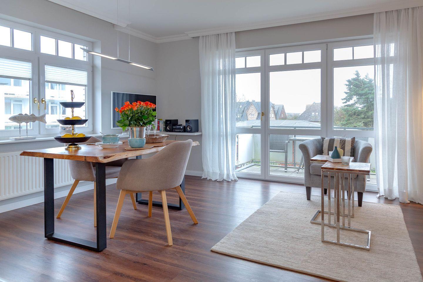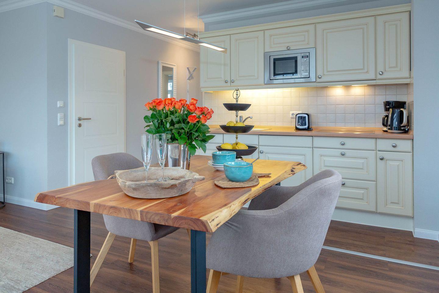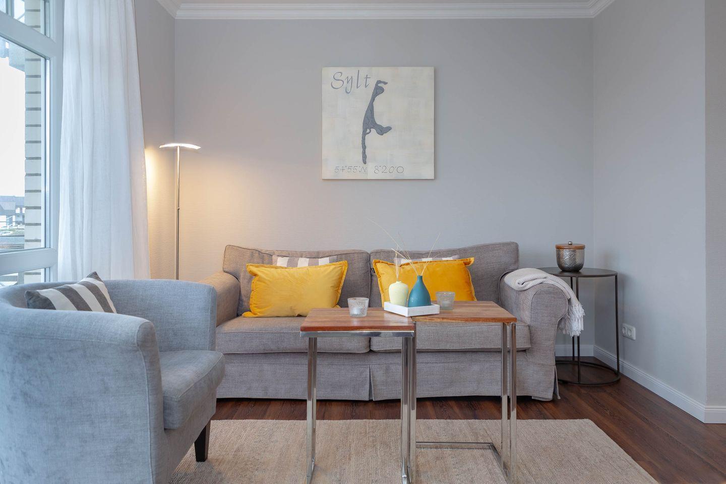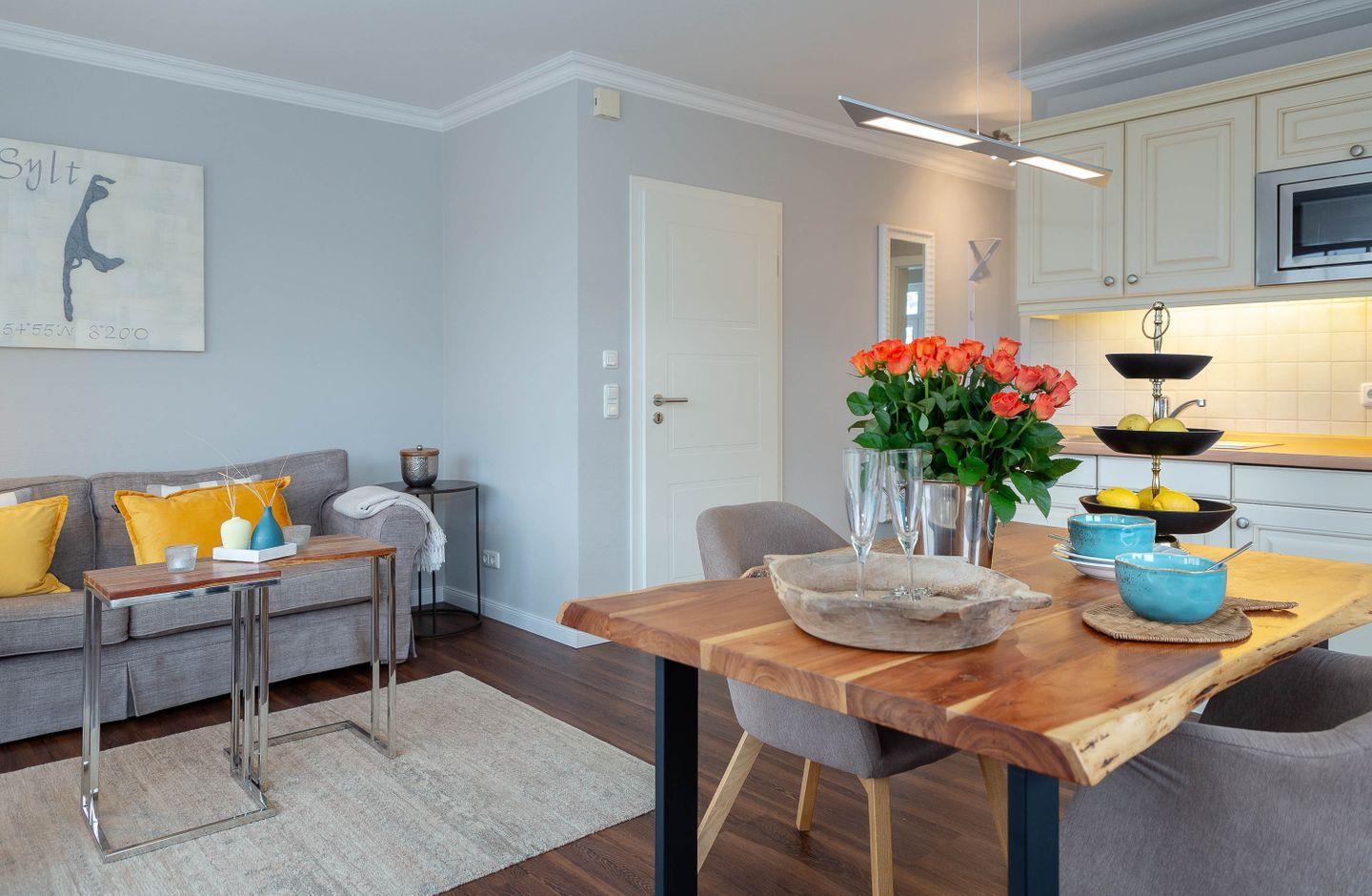 Moderne 2-Zimmer-Ferienwohnung Strandläufer A4 in Wenningstedt, nur 200 m vom Strand entfernt, mit Balkon und kostenfreiem WLAN.