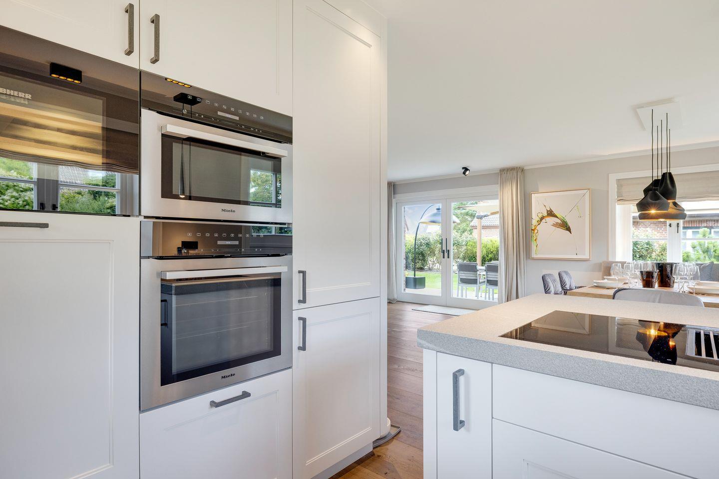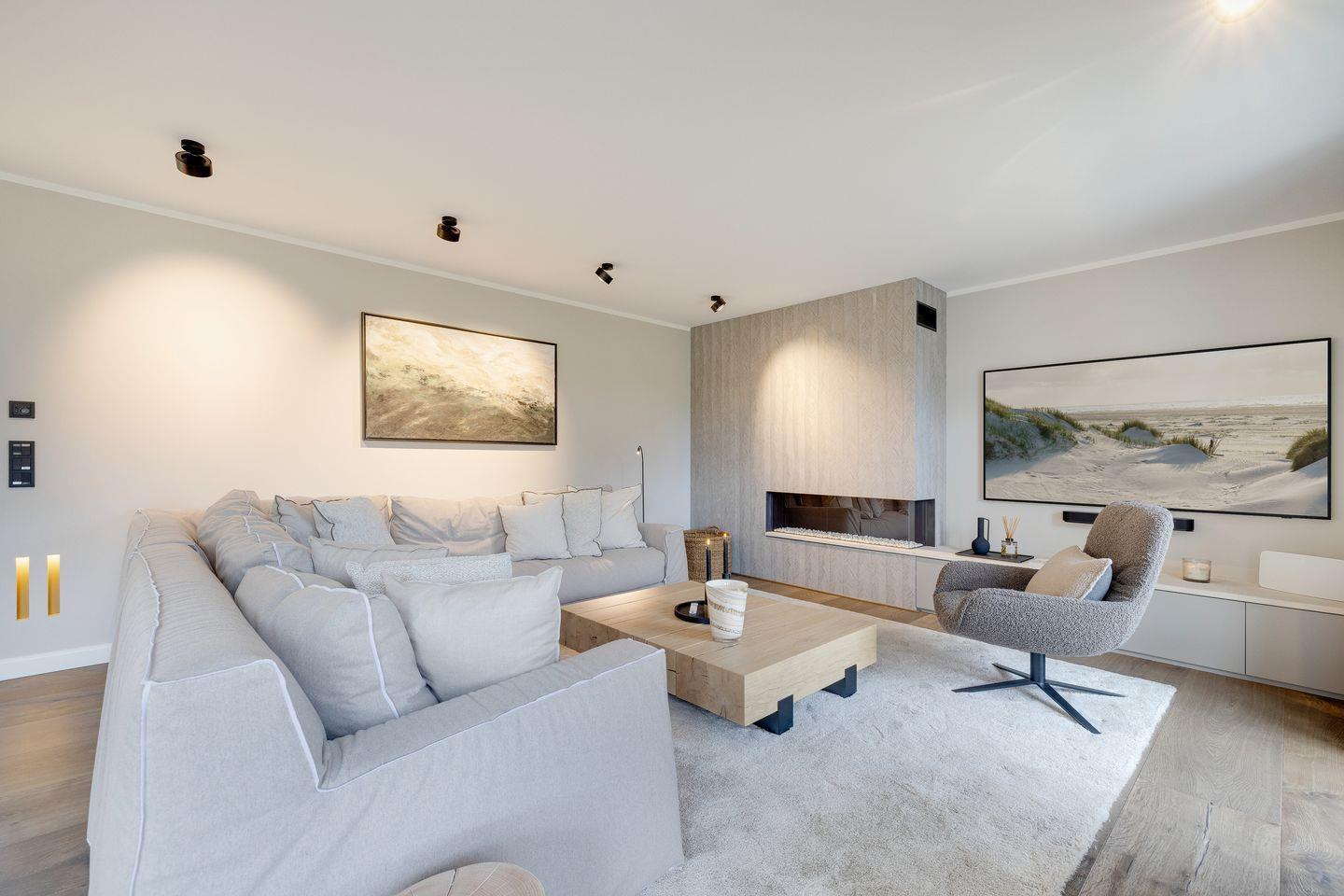 EG: Wohnraum mit Flatscreen-TV und Sound System, Kamin und Essbereich, offene Küche mit Geschirrspülmaschine, Kaffeemaschine (Nespresso), Induktionsherd, Wasserkocher, Toaster, Mikrowelle, Backofen, Kühlschrank, Gäste-WC, zwei möblierte Terrassen mit Sonnenschirm und Heizstrahler, eigener Garten mit West Ausrichtung.