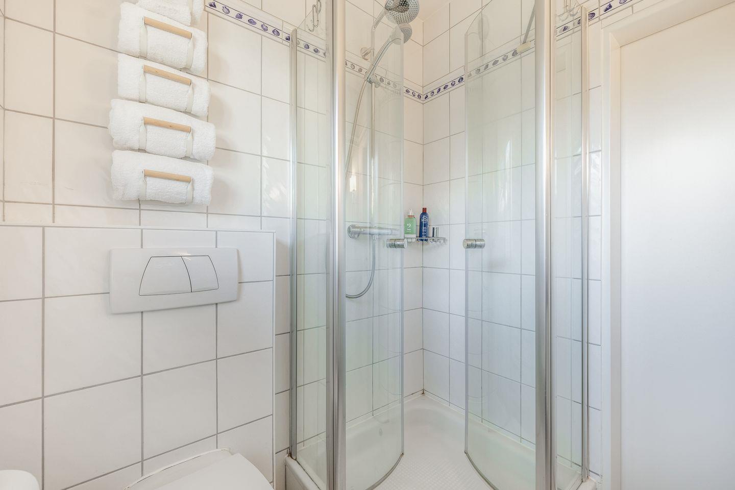 Das behagliche Schlafzimmer bietet euch mit seinem komfortablen 160 cm breiten Bett traumhaften Schlafkomfort für erholsame Nächte. Das elegante Badezimmer verwöhnt euch täglich mit einer großzügigen Regendusche – ein kleines Wellness-Erlebnis, um perfekt in den Tag zu starten.