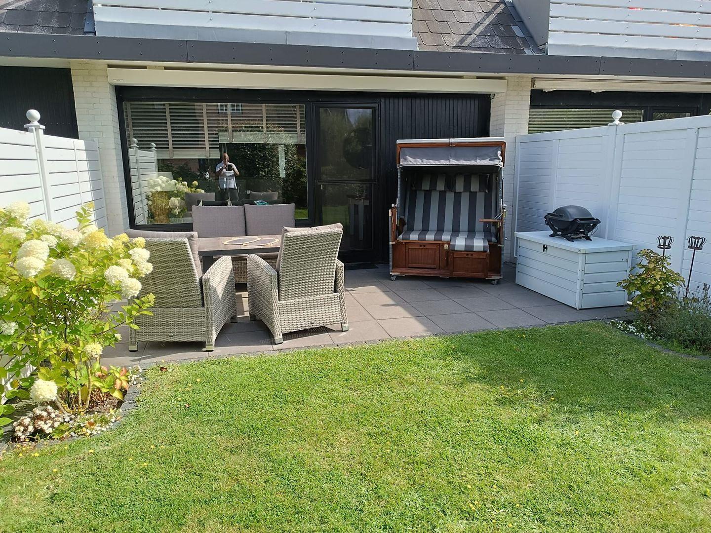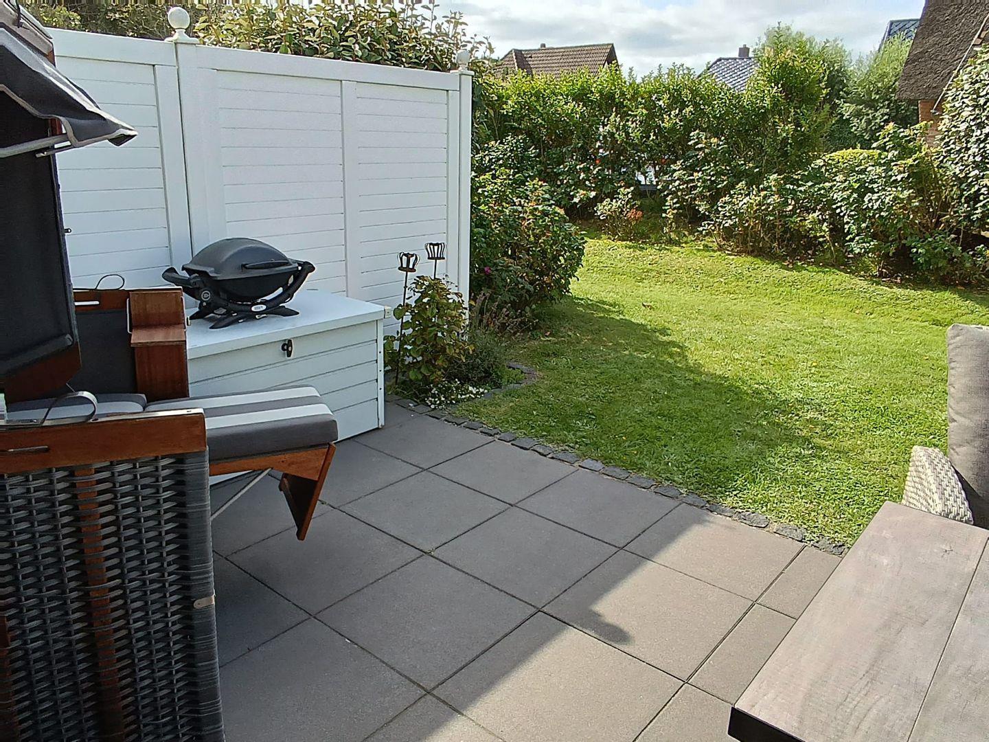 Idyllische Ferienwohnung mit Garten, Terrasse und Strandkorb in Wenningstedt, perfekt für entspannte Tage auf Sylt.