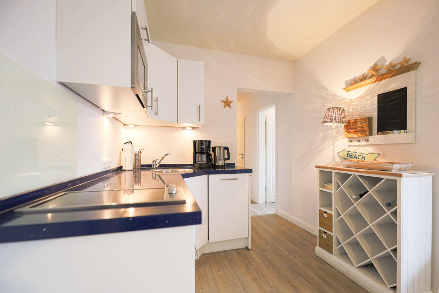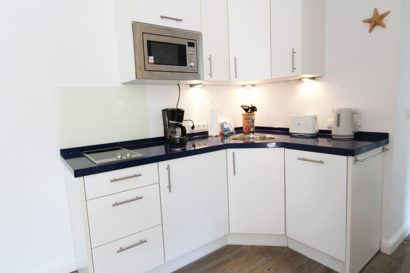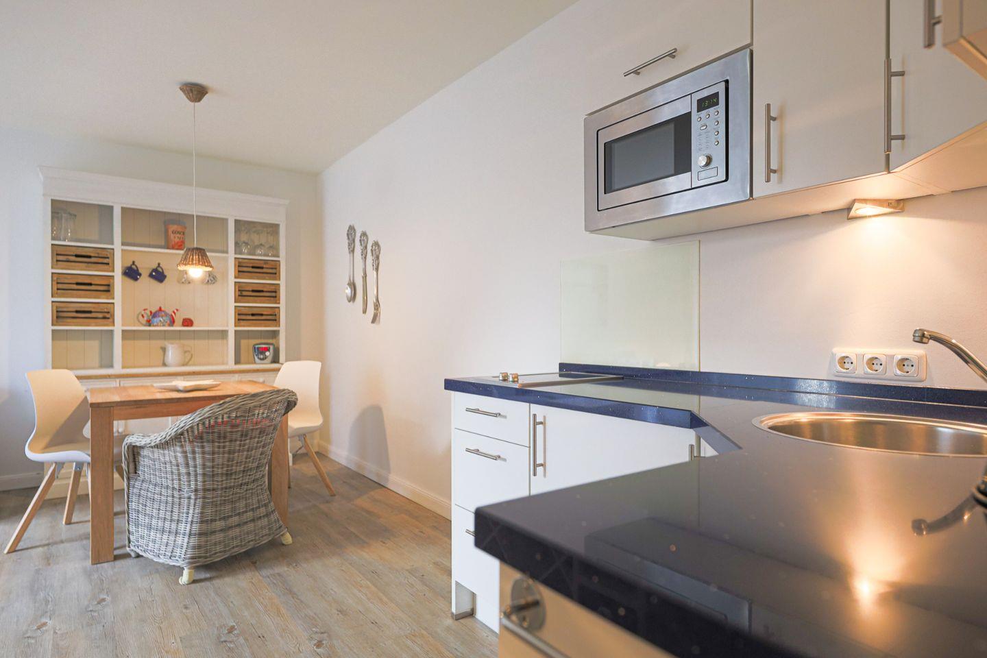 In der voll ausgestatteten Küchenzeile können Sie nach Herzenslust kochen. Der Essensplatz im Wohnbereich lädt zu entspannten Mahlzeiten ein.