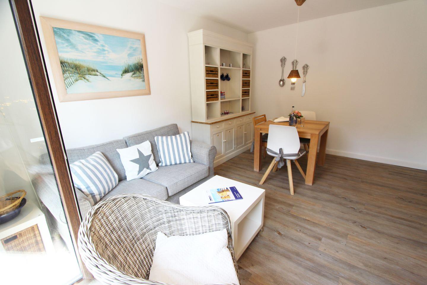Helle, gemütliche Ferienwohnung mit 2 Schlafzimmern und Südterrasse in zentraler Lage von Wenningstedt.