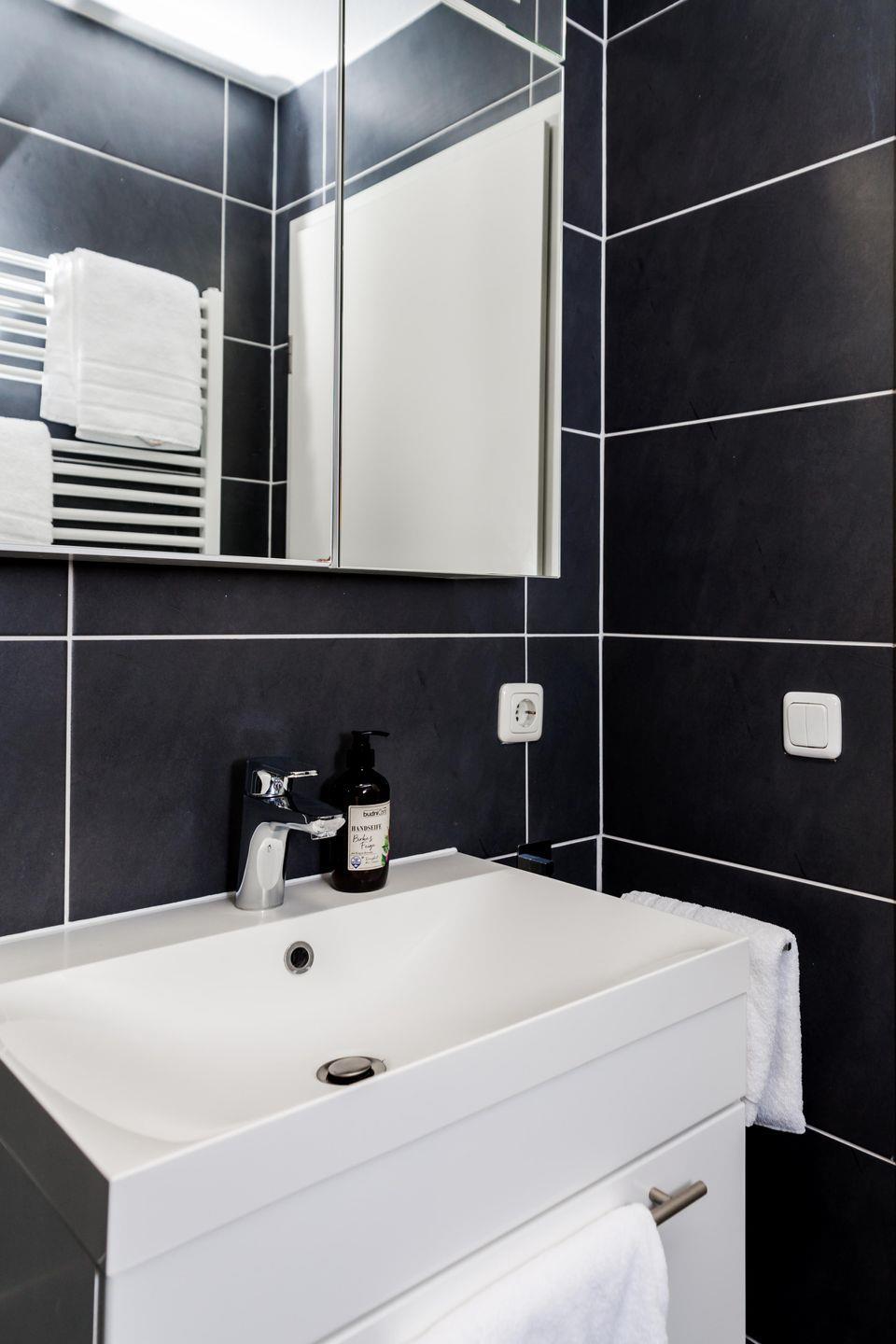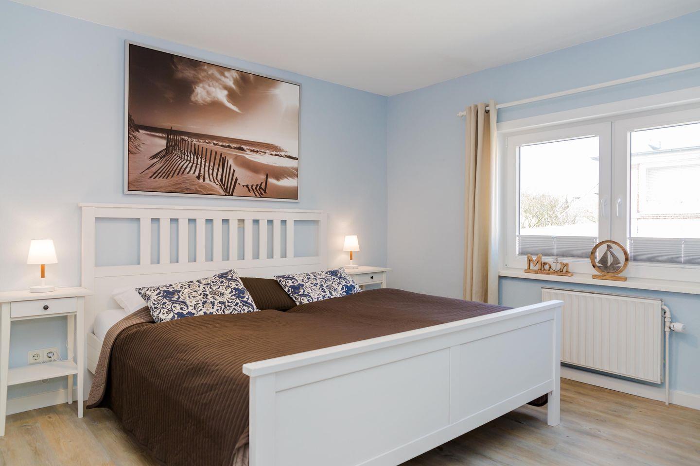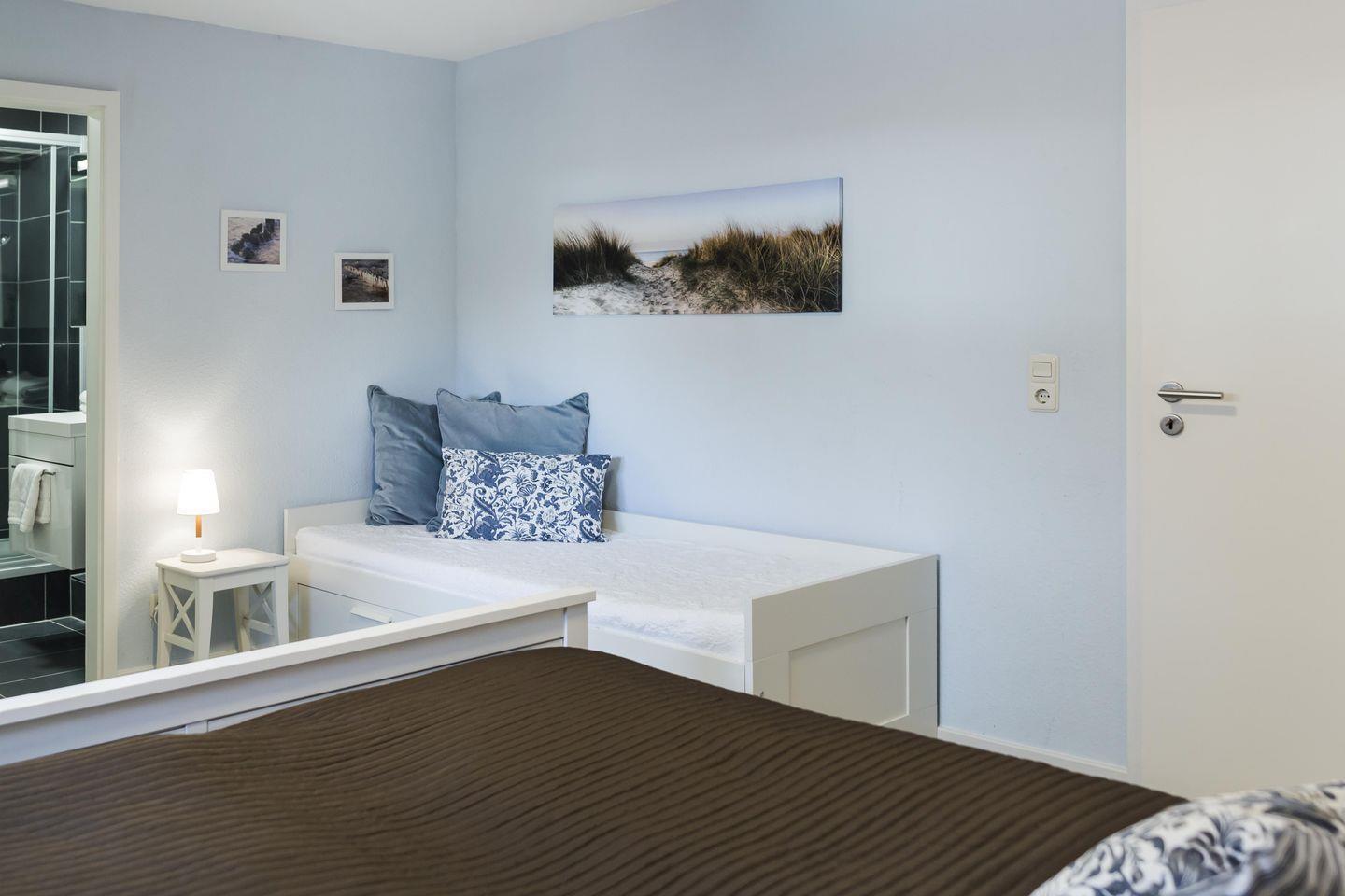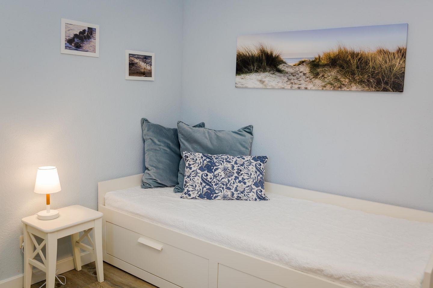 Einhellig freundlich und hell gestaltet, beherbergt die Wohnung ein komfortables Schlafzimmer, das mit einem bequemen Doppelbett sowie einem Einzelbett zum Träumen einlädt.