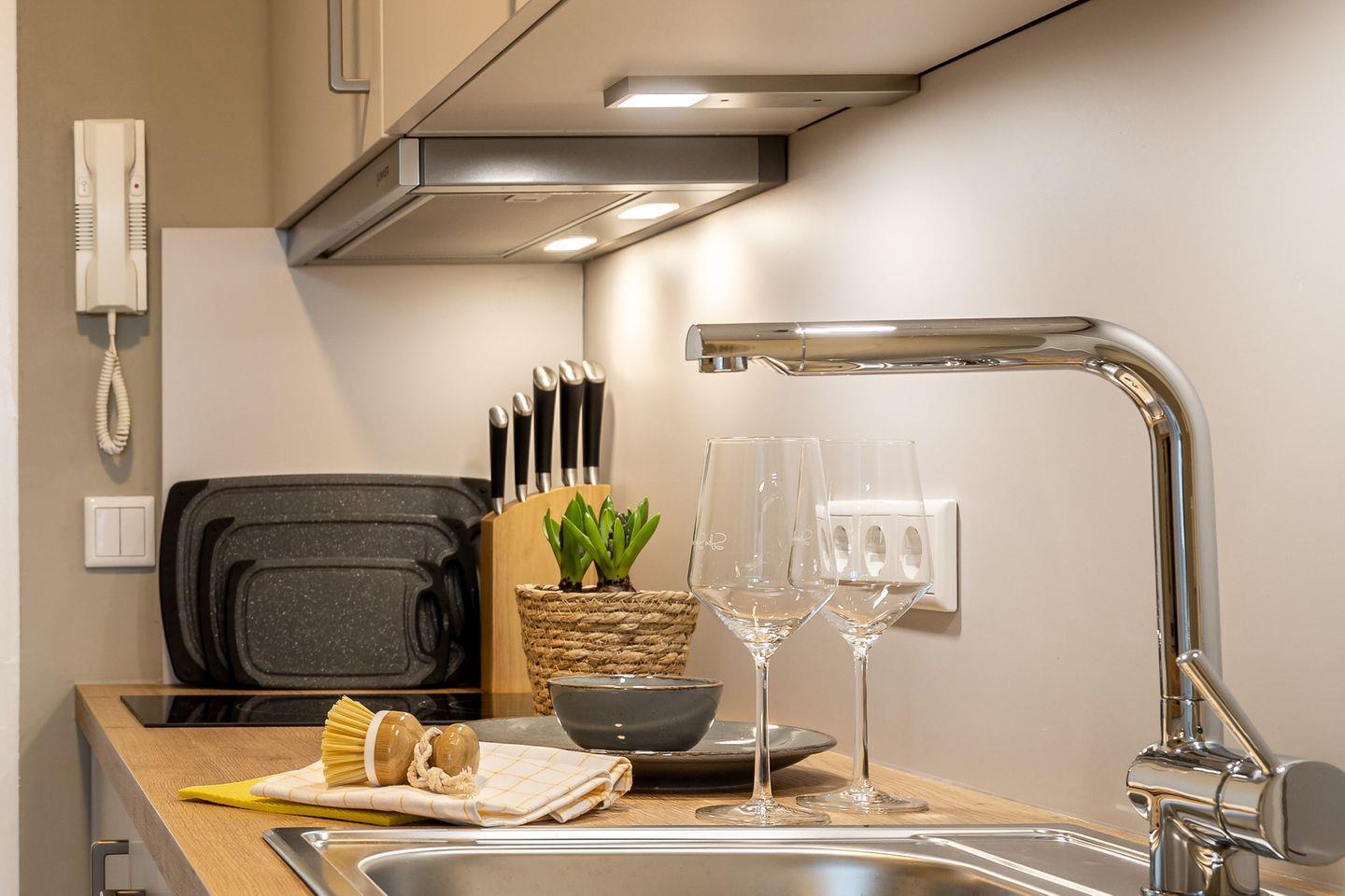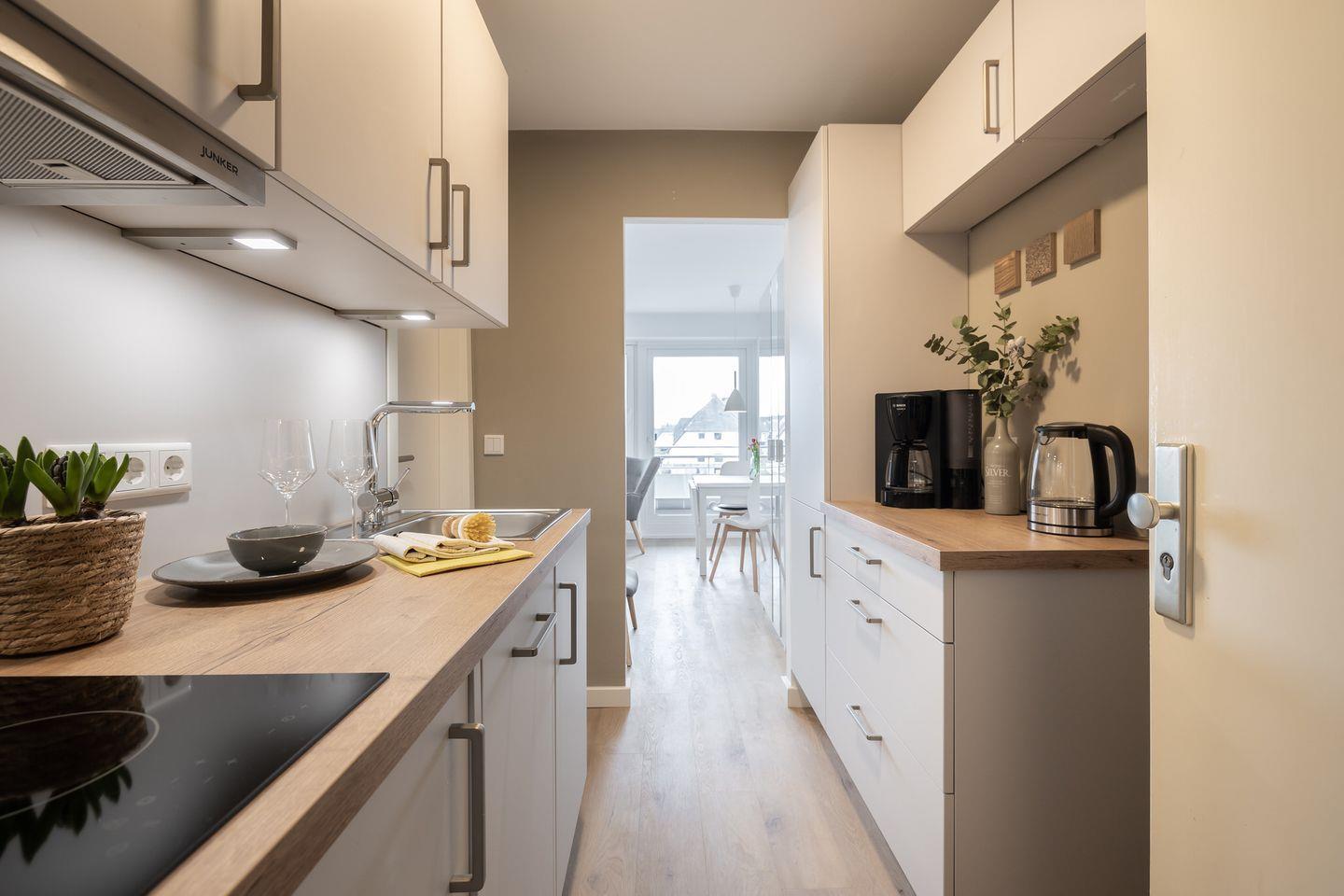 Eine gut ausgestattete Kochnische mit modernen Geräten wie einem Cerankochfeld, Kühlschrank, Gefrierfach und Spülmaschine ermöglicht es Ihnen, Ihre Lieblingsgerichte zuzubereiten. Kaffee- und Teeliebhaber können sich über eine Kaffeemaschine und einen Wasserkocher freuen. Ein großzügiger Balkon bietet Ihnen die Möglichkeit, die Sonne in vollen Zügen zu genießen und den Tag bei einem Glas Wein ausklingen zu lassen, während Sie den Blick über die Umgebung schweifen lassen.