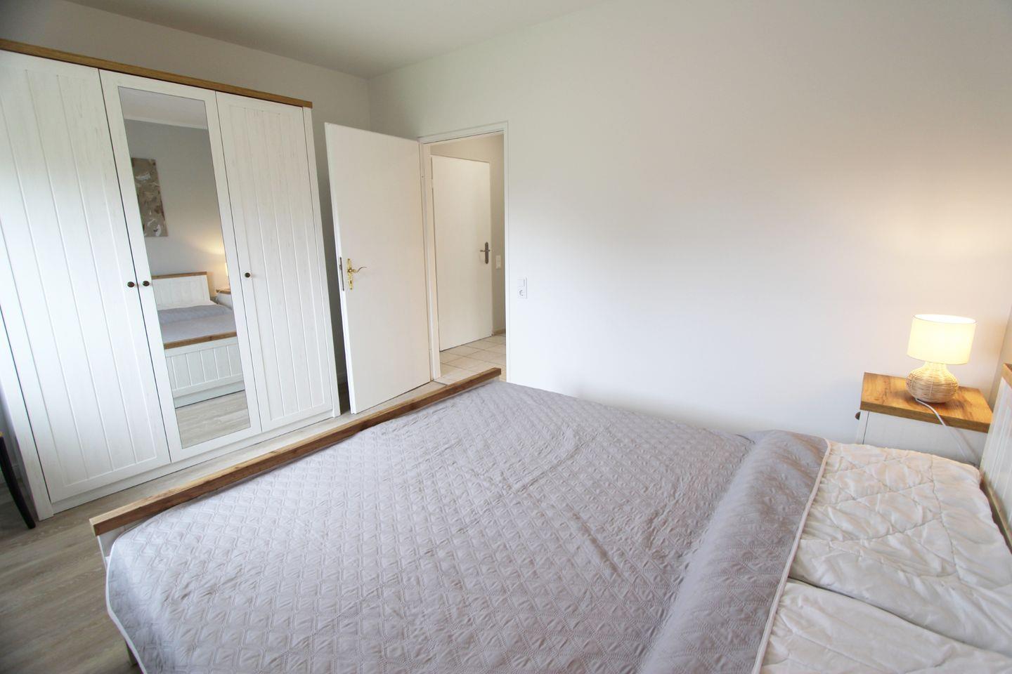Das große Schlafzimmer verfügt über ein gemütliches Doppelbett und einen geräumigen Kleiderschrank.