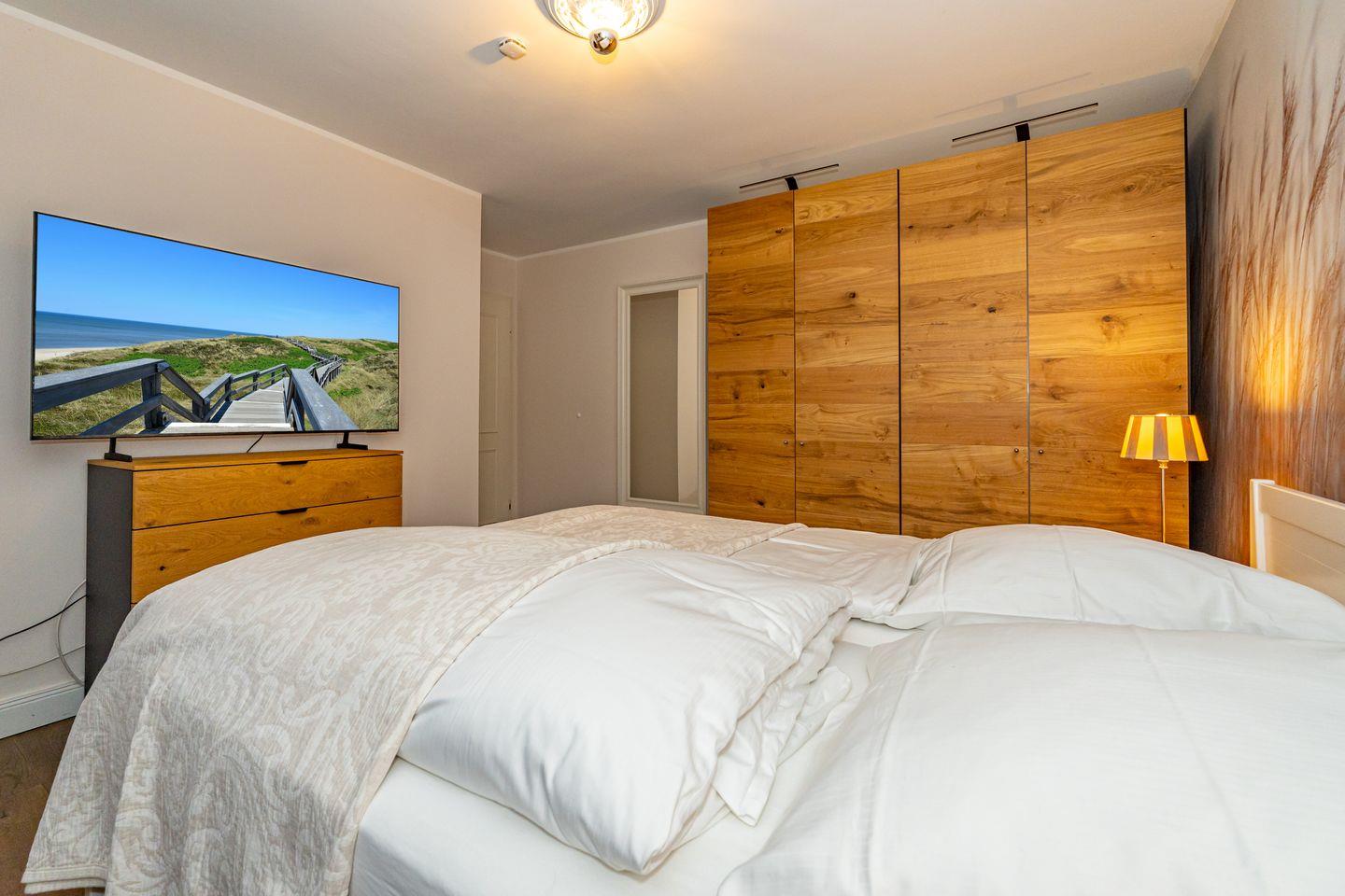 Die Ferienwohnung "Ferienliebe Strandkoje" ist eine komfortable und moderne Ferienwohnung in Wenningstedt-Braderup auf Sylt. Mit 52 m² Wohnfläche bietet dieses Domizil ausreichend Platz für bis zu drei Personen. Der freundliche Wohn- und Essbereich ist ausgestattet mit einem Esstisch, gemütlichen Sofa, Kaminofen und TV. Von hier haben Sie Zutritt zur Terrasse mit Gartenmöbeln (saisonal). Die Küche bietet Ihnen einen Backofen, Mikrowelle, Toaster, Wasserkocher, Kaffeefiltermaschine und Geschirrspüler. Das gemütliche Schlafzimmer verfügt über ein Doppelbett, TV und Kleiderschrank. Im Tageslicht Badezimmer bietet Ihnen ein Waschbecken, WC, Dusche und Fön. Nur 550 Meter trennen Sie vom herrlichen Sandstrand – der zu ausgedehnten Spaziergängen, Badeausflügen oder sportlichen Aktivitäten einlädt. Ein weiteres Plus ist der kostenfreie Privatparkplatz, der Ihnen auf dem Grundstück zur Verfügung steht. Ein Haustier ist nach vorheriger Anmeldung und gegen Gebühr (10€ pro Tag/pro Tier) erlaubt.
