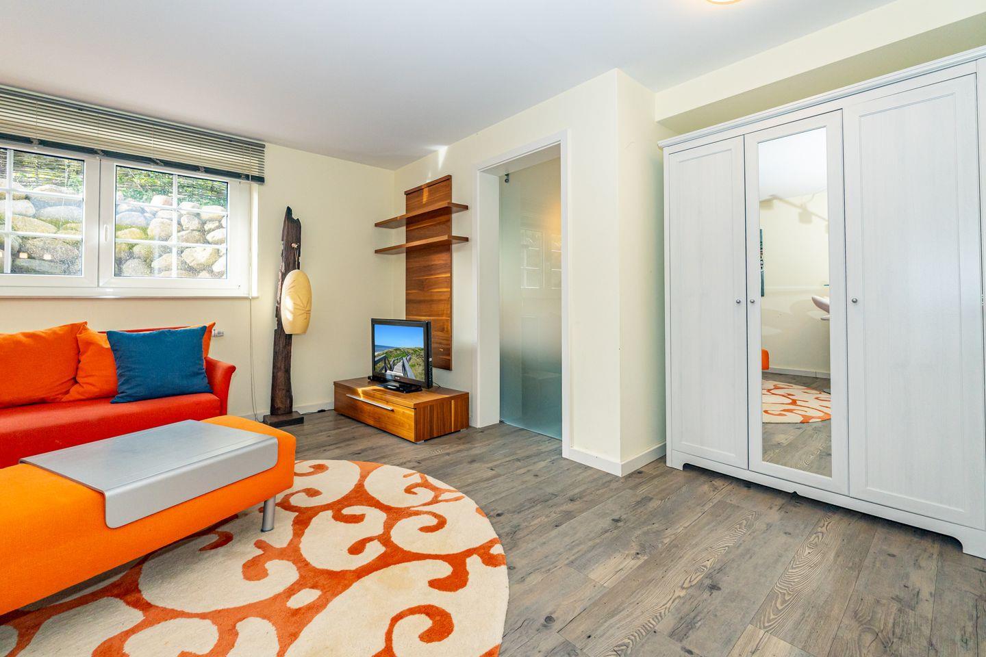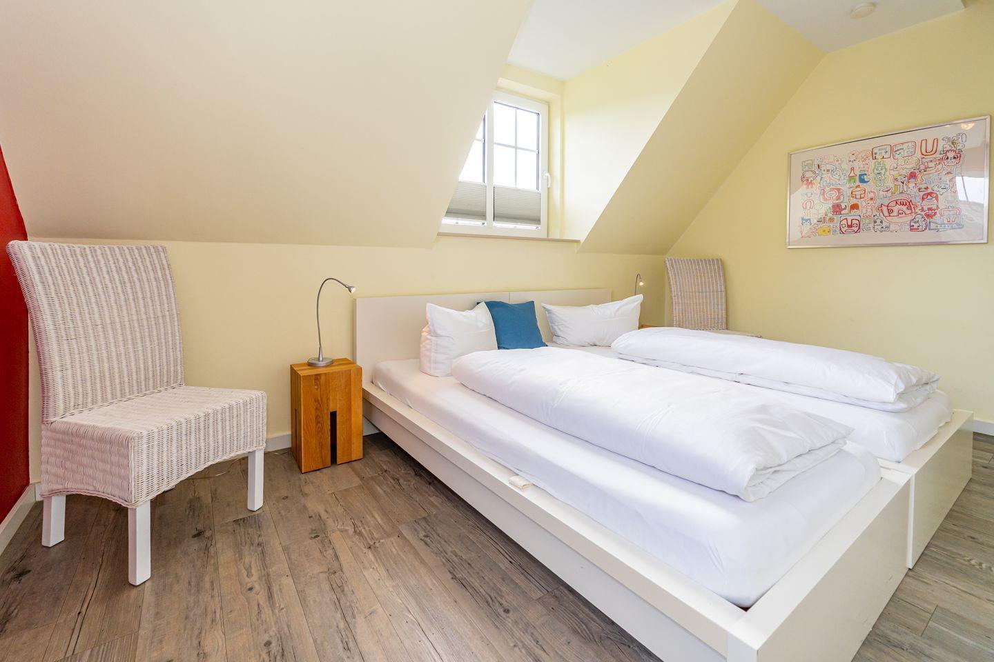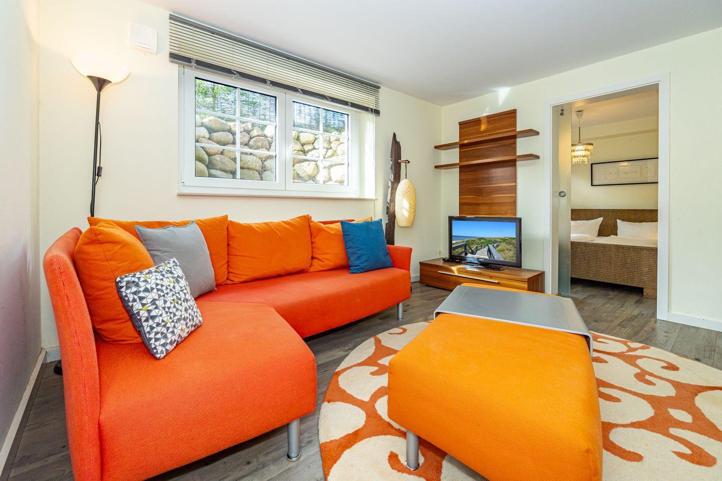 Die Villa verfügt über insgesamt fünf Zimmer, darunter vier Schlafzimmer, die bis zu acht Personen komfortabel Platz bieten. Somit eignet sich das Objekt besonders für Familien, Freundesgruppen oder auch kleine Teams. Die Inneneinrichtung der Villa Luna ist modern und zugleich behaglich gestaltet. Der lichtdurchflutete Wohnbereich ist mit einer Sofaecke sowie einem Kamin ausgestattet, der auch an kühleren Abenden eine angenehme Atmosphäre schafft.