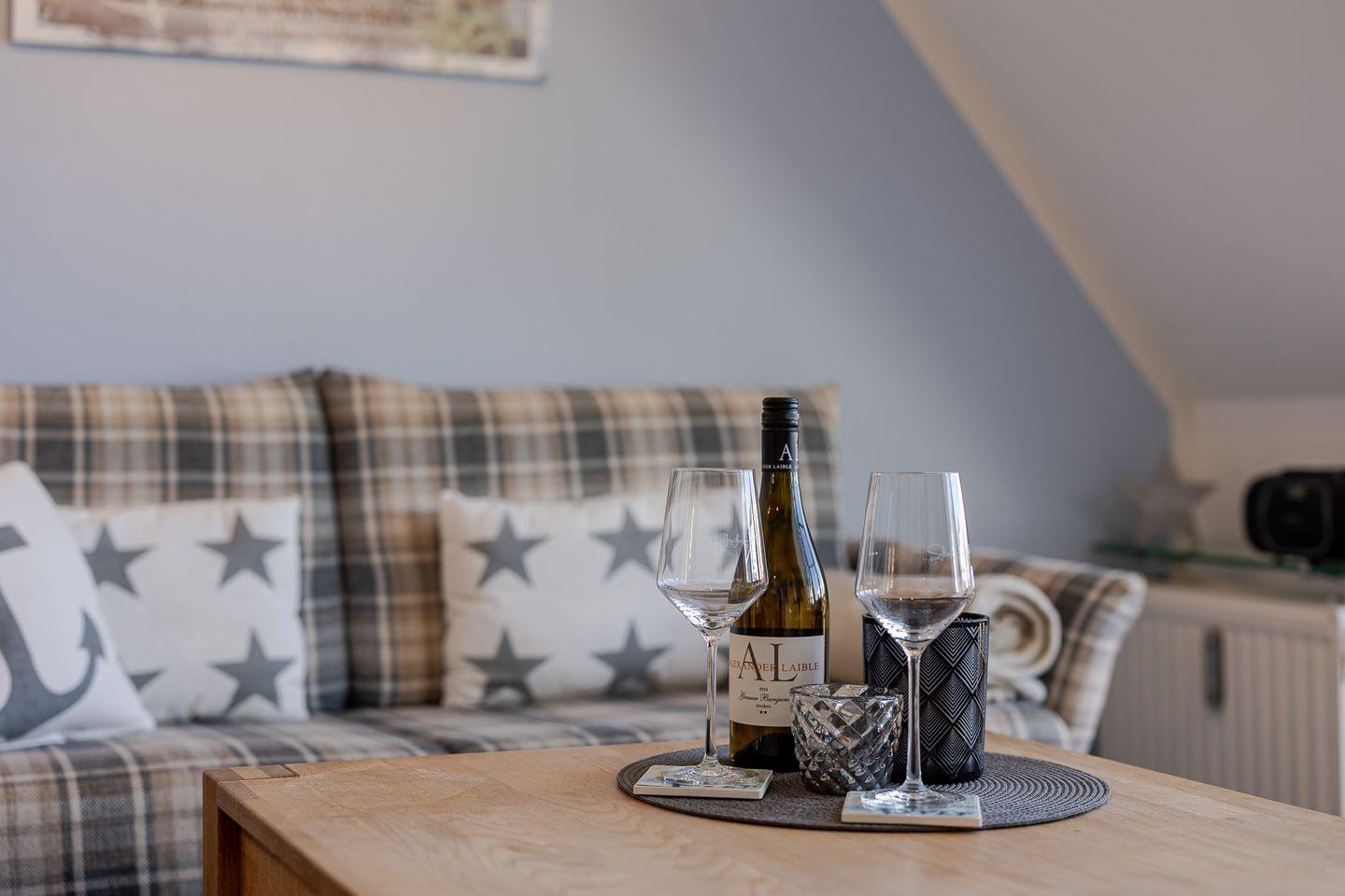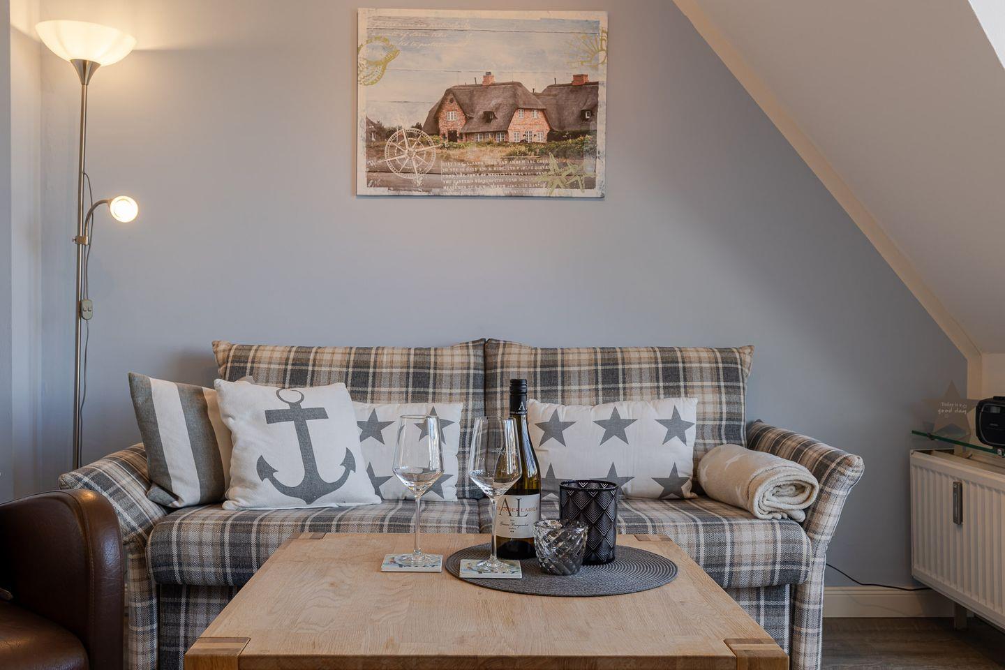 Vom Wohnbereich aus entsteht dieses vertraute Gefühl, angekommen zu sein – mit Zeit für sich, für Ruhe und für Sylt.