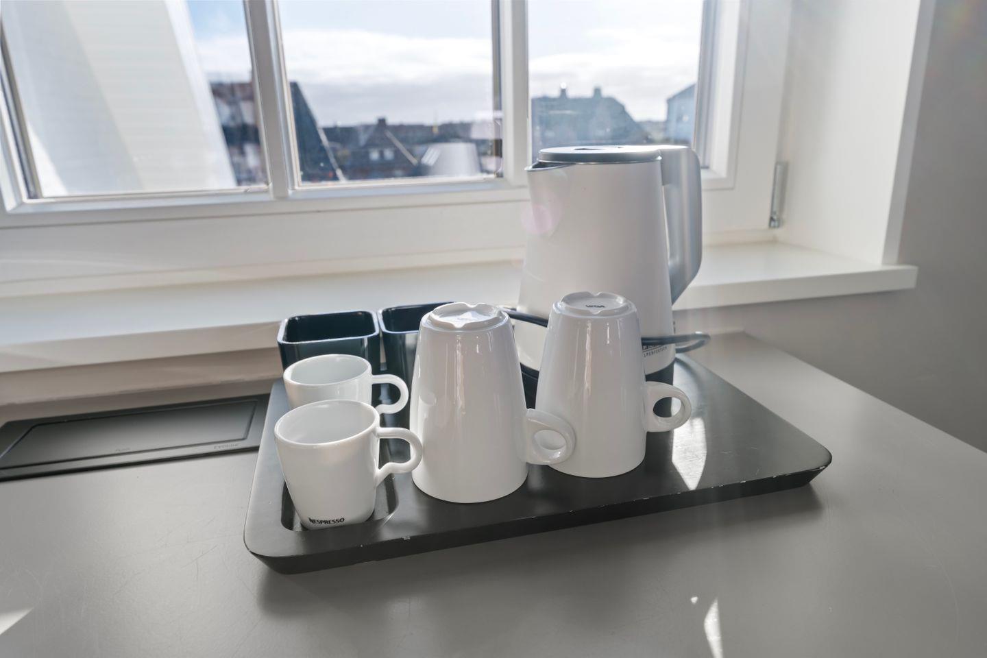Die offene Pantry-Küche ist optimal für kleine kulinarische Auszeiten: Ob ein schnelles Frühstück mit frisch gebrühtem Nespresso-Kaffee oder ein leichtes Abendessen – dank kleinem Induktionskochfeld, Kühlschrank mit Gefrierfach und Geschirrspüler wird Kochen hier zum Vergnügen. Ein Weinkühlschrank sorgt für gekühlten Wein-Genuss.