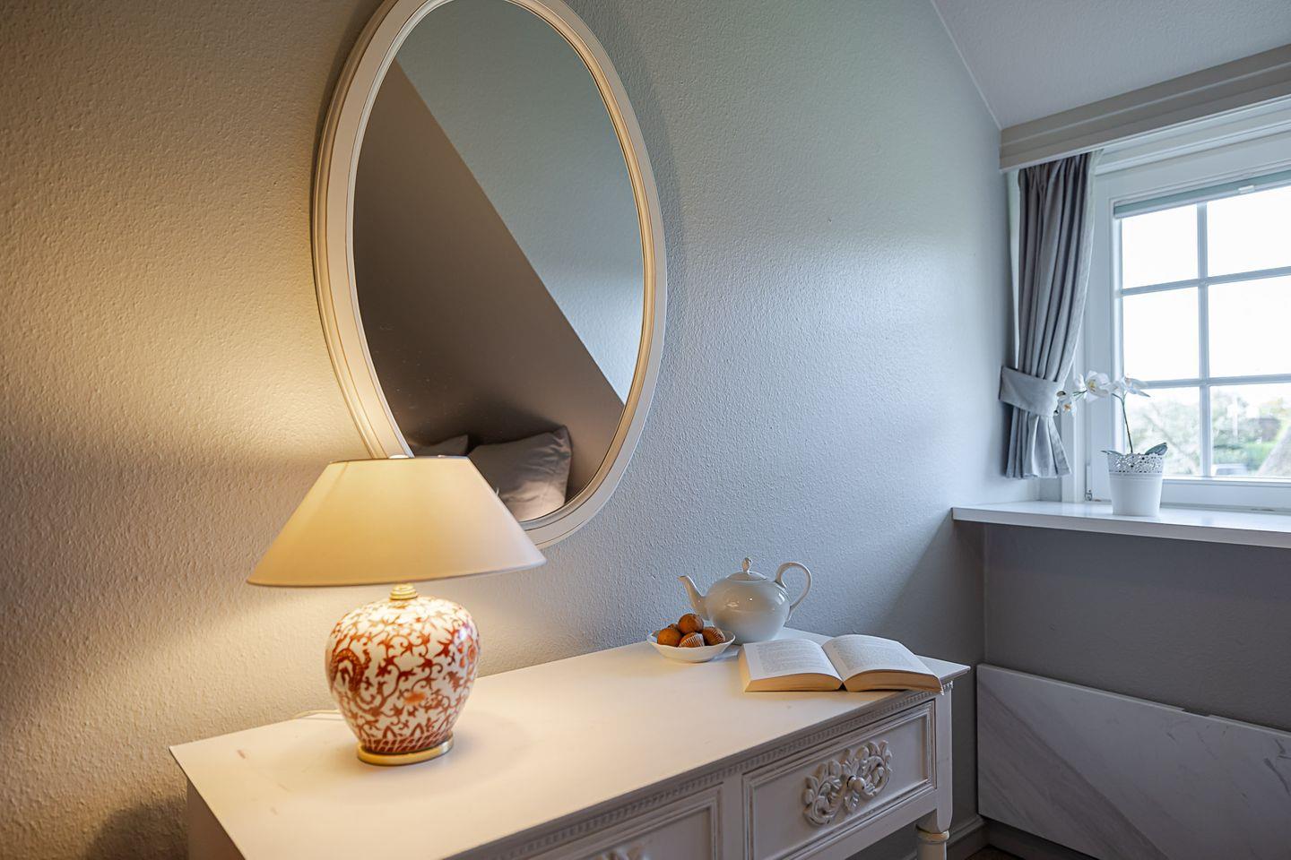 Von hier aus genießen Sie den Charme der Wattseite: das sanfte Licht, die Ruhe und den Blick in die Natur – ein Ort, an dem der Alltag leise wird.