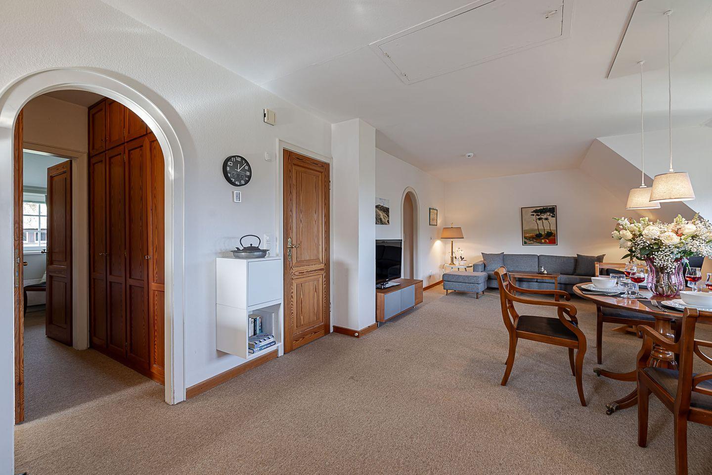 Auf rund 80 m² bietet die Ferienwohnung Platz für bis zu vier Personen. Zwei Schlafzimmer, zwei Bäder und ein großzügiger Wohnbereich mit offener Küche schaffen ein angenehmes Raumgefühl und ideale Voraussetzungen für entspannte Tage auf Sylt.