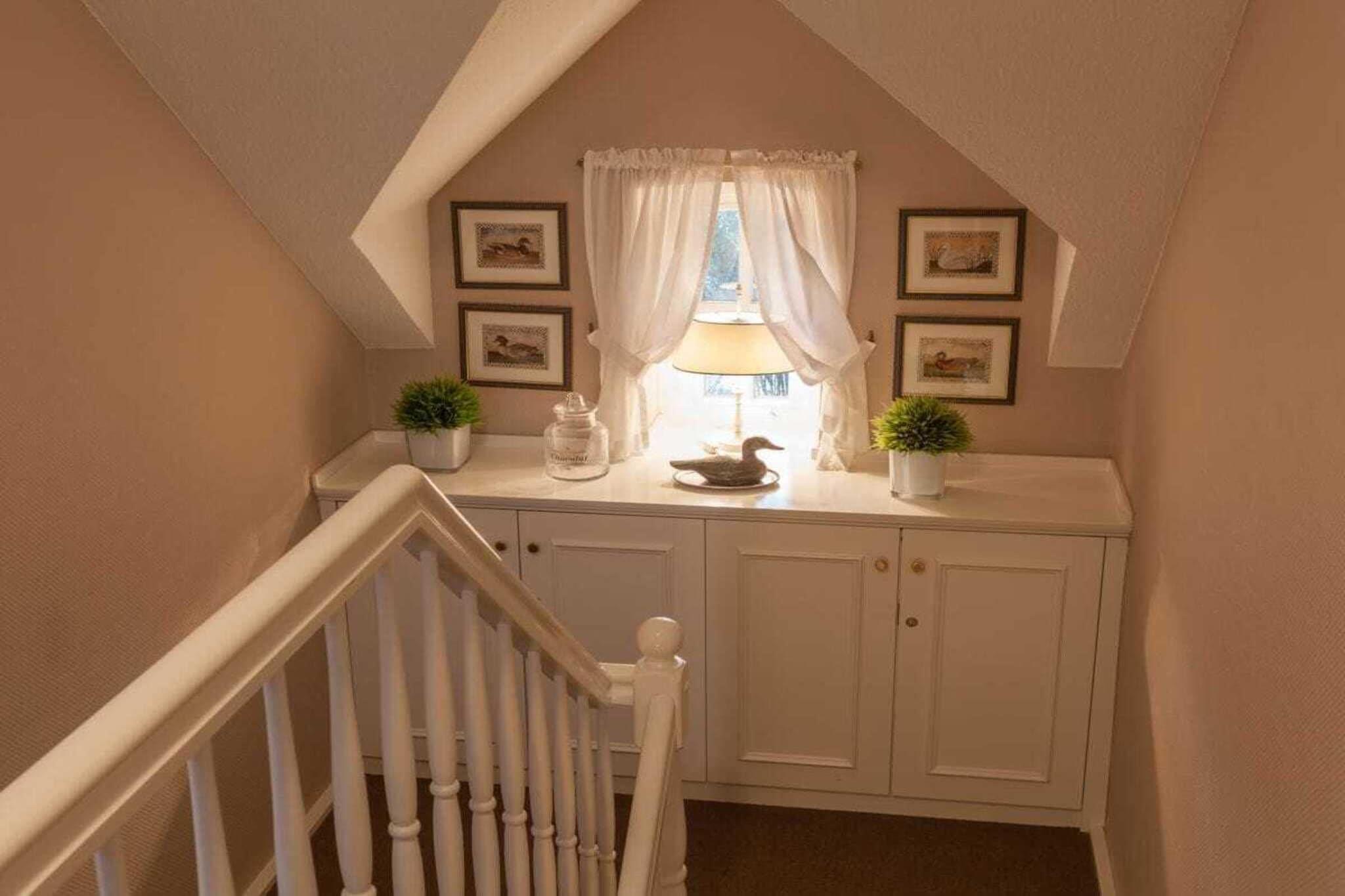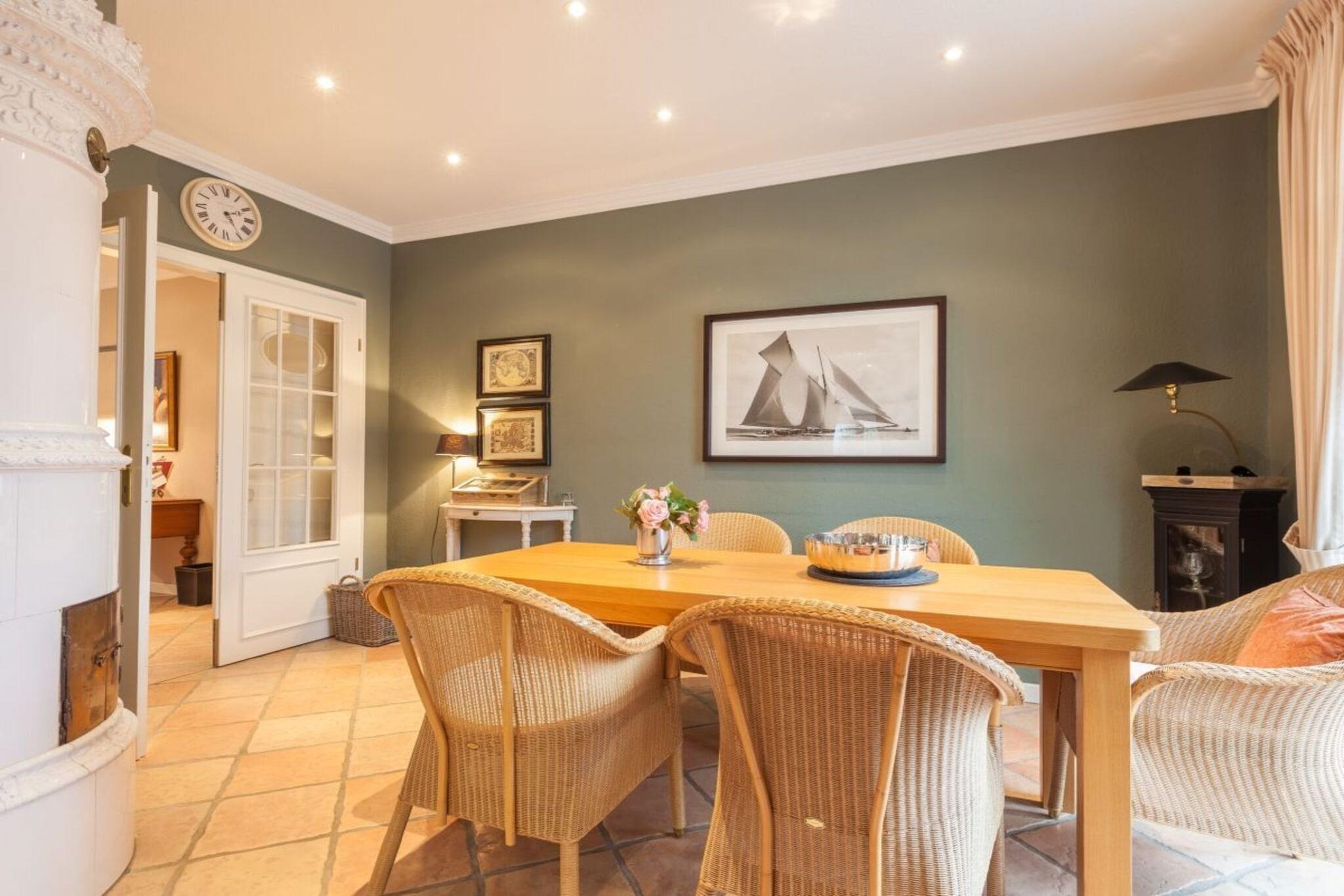 Das 125 m² großes freistehendes Ferienhaus beinhaltet: EG: Ein Doppelbettzimmer mit angrenzendem Duschbad und WC, Wohnzimmer, Kaminzimmer mit antikem Kachelofen, Esszimmer, Küche, Saunabereich mit Dusche. Vom Kaminzimmer und Küche Ausgang zur überdachten Loggia, Strandkorb und Gartenmöbeln, großer abgeschlossener Garten. OG: Zwei Doppelbettzimmer, ein Vollbad. Das Haus ist hochwertig eingerichtet und für maximal 6 Personen ausgestattet.