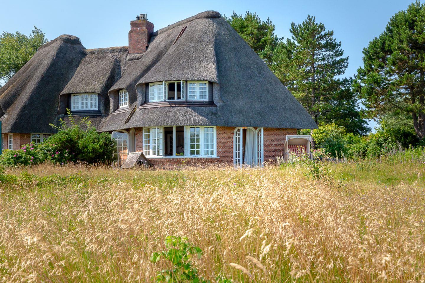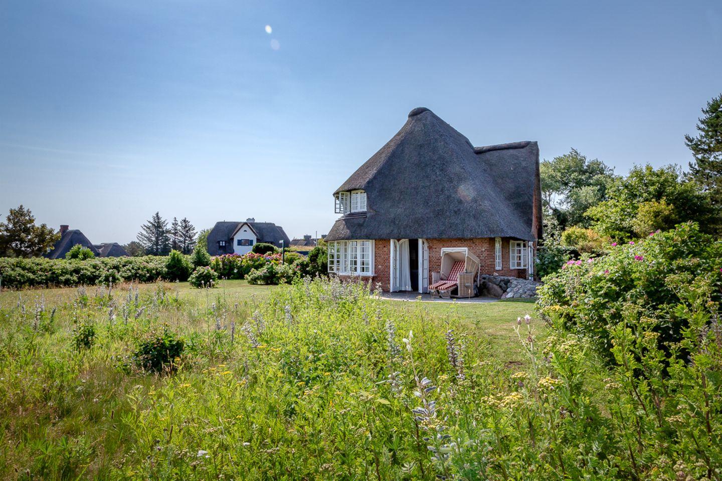Nachhaltiges Reetdachhaus mit Meerblick, Sauna und großem Garten nahe dem Braderuper Watt auf Sylt.