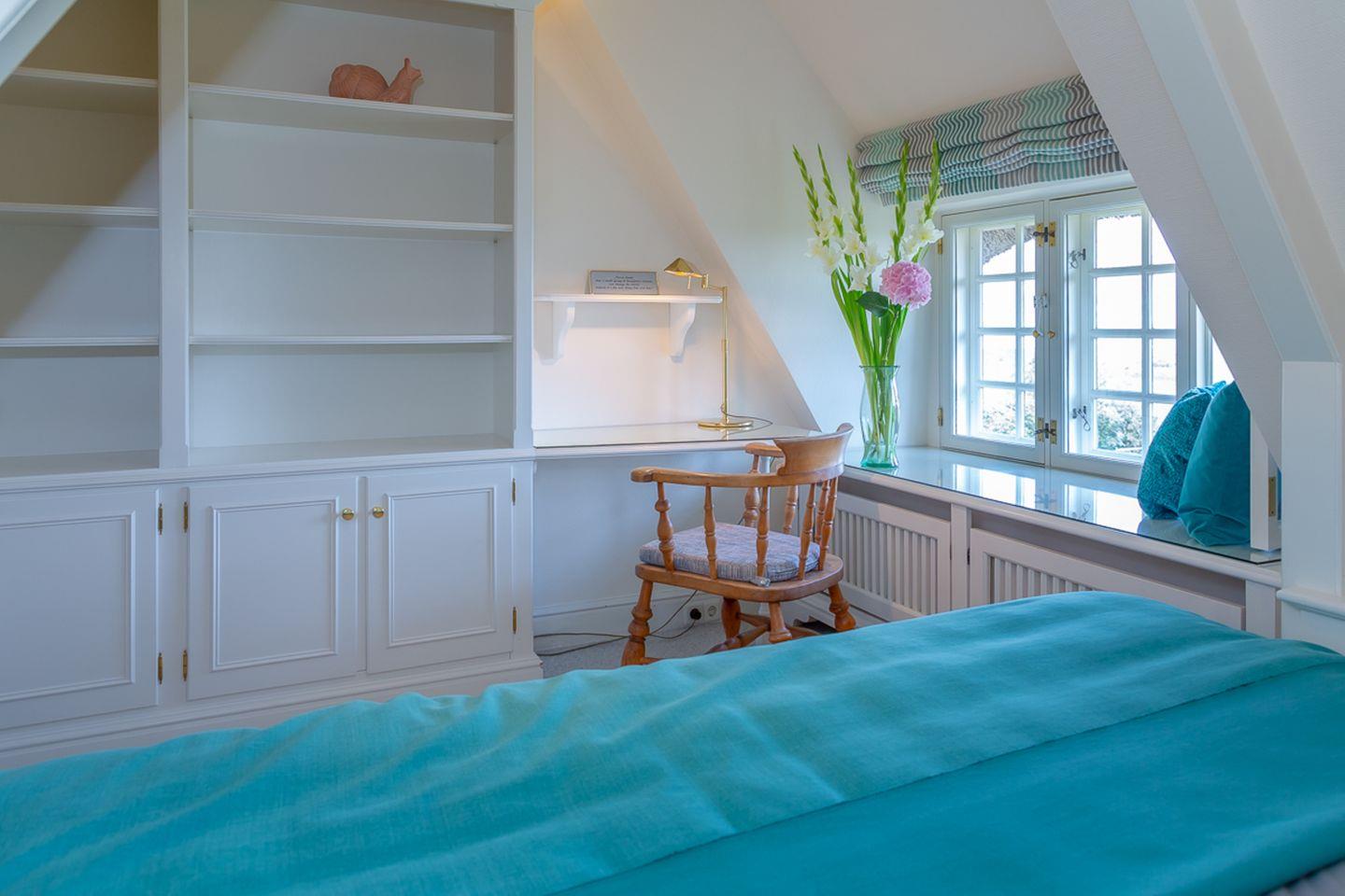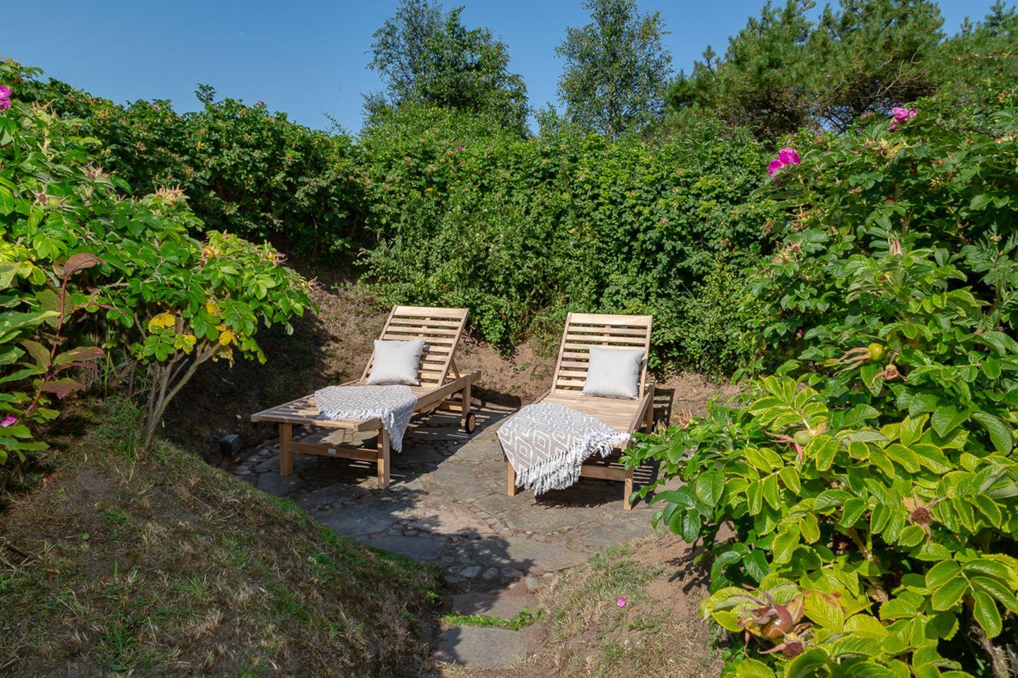 Das Untergeschoss ist mit Eichendielen ausgelegt und bietet Ihnen eine Sauna, ein weiteres Badezimmer und ein Spielzimmer mit behaglichen Sitzmöglichkeiten, sodass sich das Haus auch sehr gut für den Urlaub mit Kindern eignet. Das Haus ist von einem Naturgarten umgeben und bietet Ihnen einen perfekten Ausgangspunkt, um die unvergleichliche Natur der Insel mit ihrer Magie zu erkunden. Komfortable Gartenliegen und Liegestühle stehen zur Verfügung, um die Ruhe der Umgebung in vollen Zügen zu erleben. Außerdem können Sie vom Haus und Garten aus den berühmten Kampener Leuchtturm sehen, der in einem schönen Spaziergang zu erreichen ist.