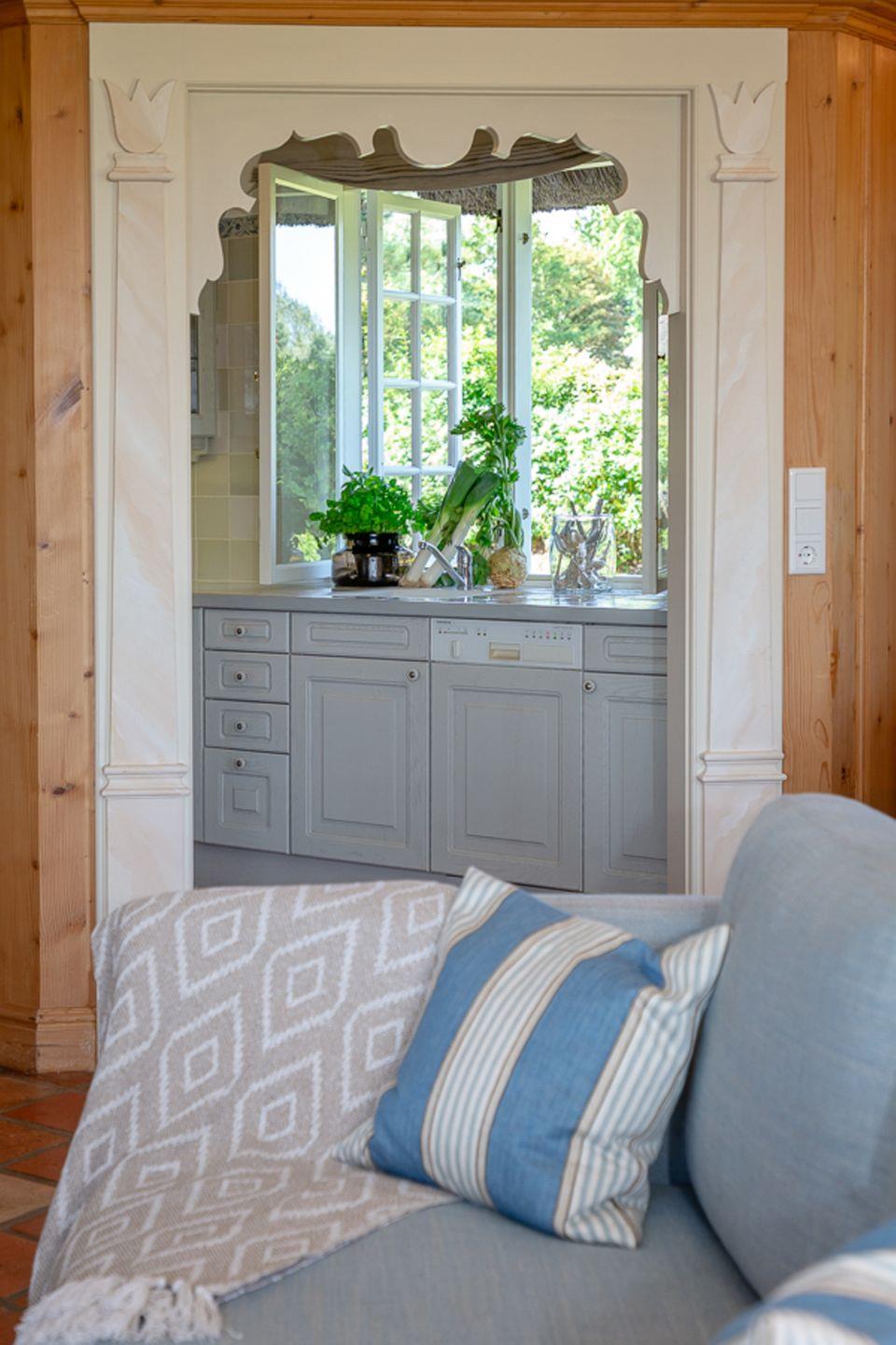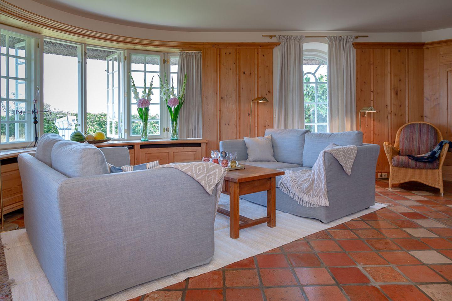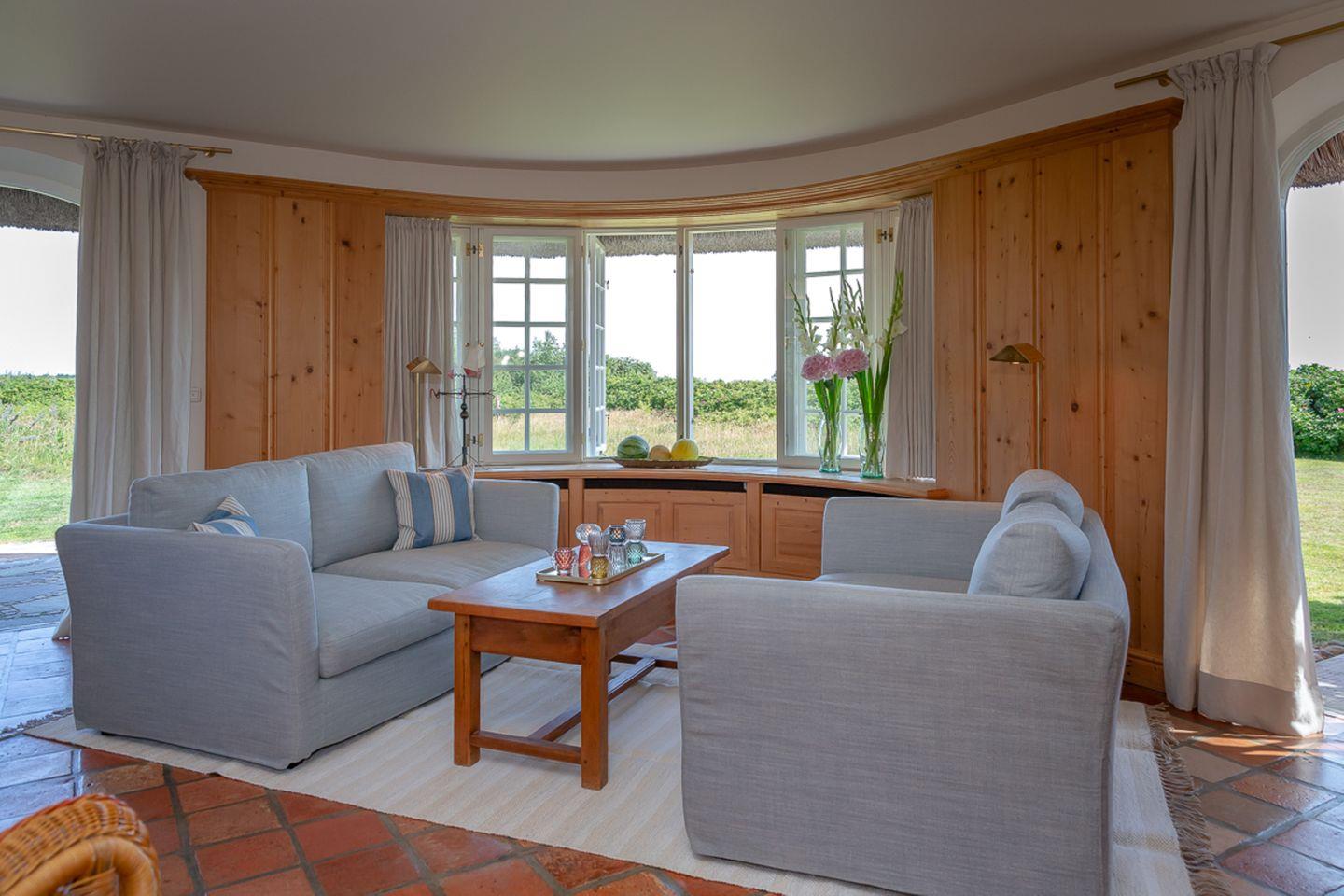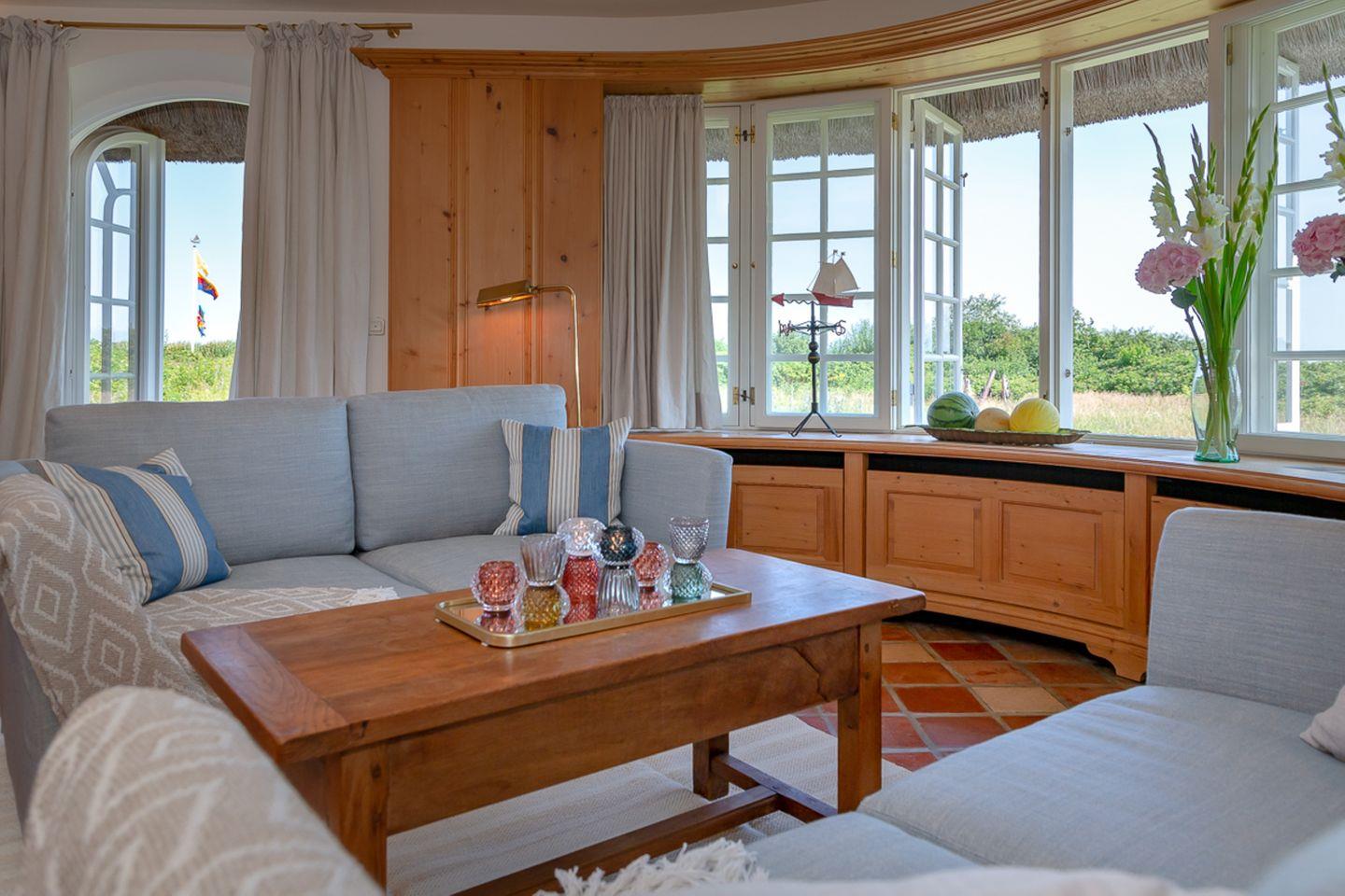 Verbringen Sie verträumte Stunden in Ihrem behaglichen Wohnzimmer, in dem Sie im Winter am Kamin sitzen und den unverstellten Blick auf das Meer genießen können. In diesem Haus wird das Motto „Wertschätzung statt Vergeudung“ großgeschrieben und so bietet Ihnen der leicht separate Küchenbereich – im Sinne der Nachhaltigkeit – eine gelungene Kombination aus hochwertiger Ausstattung und älteren Küchengeräten, durch die sich die Selbstversorgung im Urlaub einfach gut anfühlt.