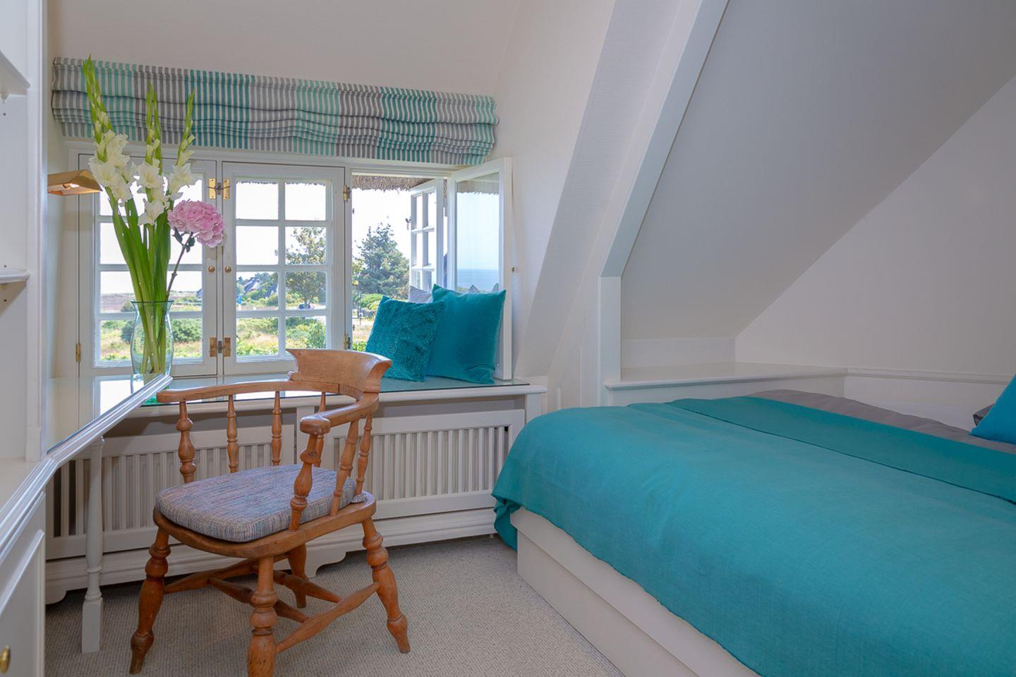 Im Obergeschoss befinden sich zwei Schlafzimmer mit großen Einbauschränken und der unvergleichlichen Möglichkeit, sich von Ihrem ganz persönlichen Sonnenaufgang in den Tag begleiten zu lassen. Ein Schlafzimmer verfügt über ein Doppelbett im gemütlichen Alkoven-Stil. Das Badezimmer wurde im Jahr 2025 vollständig saniert und bietet höchsten Komfort.
